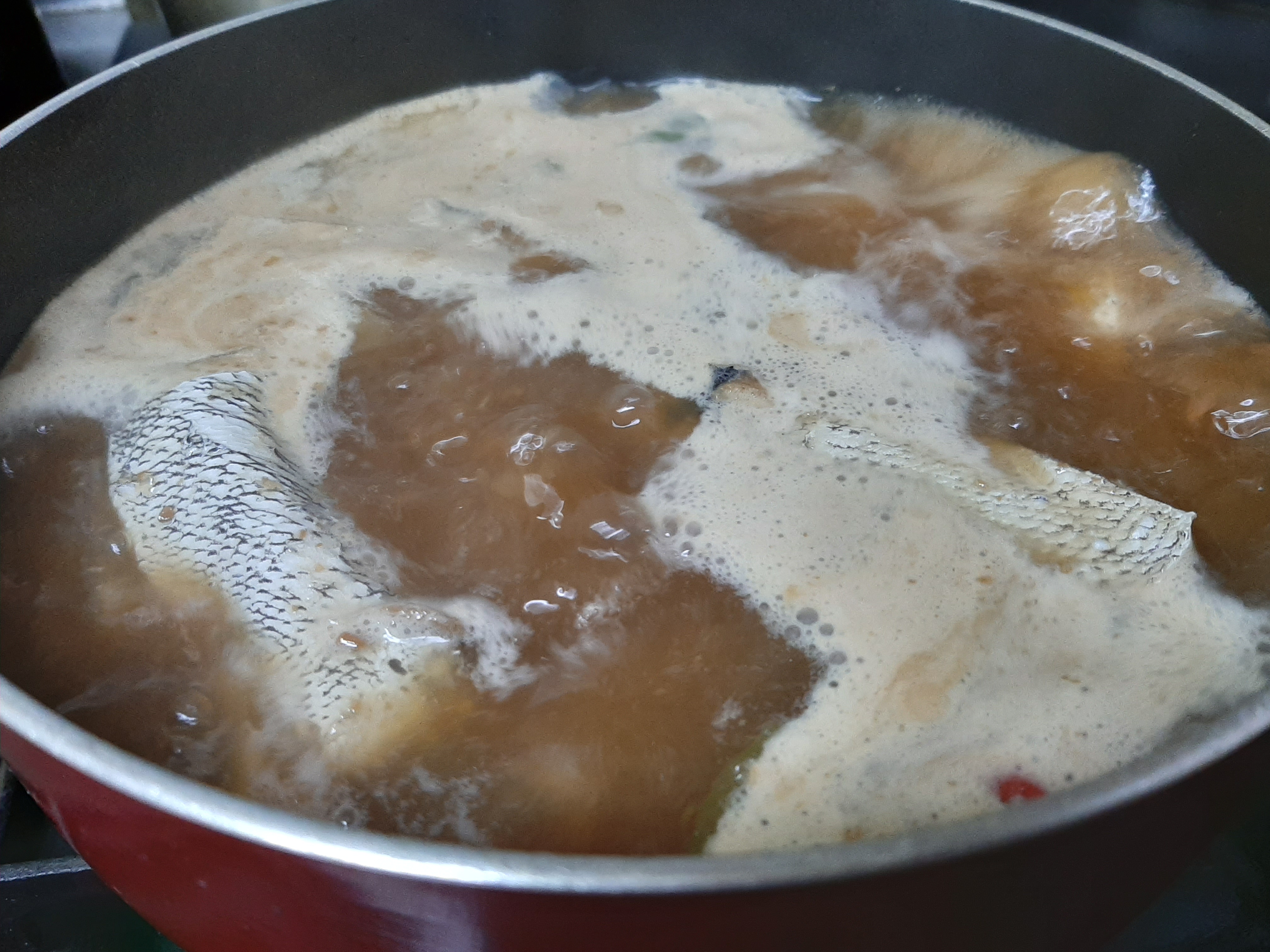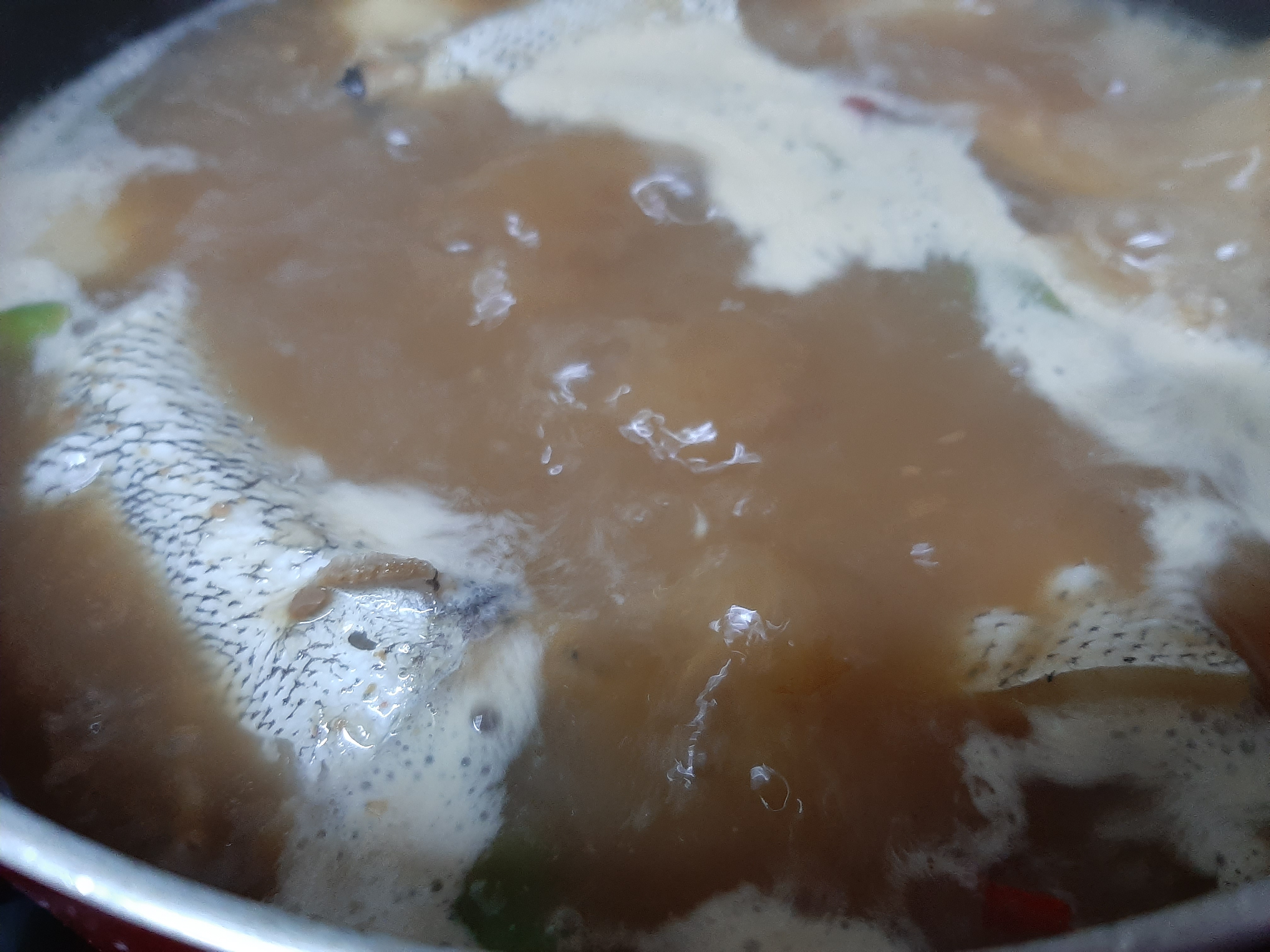 4. 3에 1/2 등분한 민어를 넣고 끓인다.