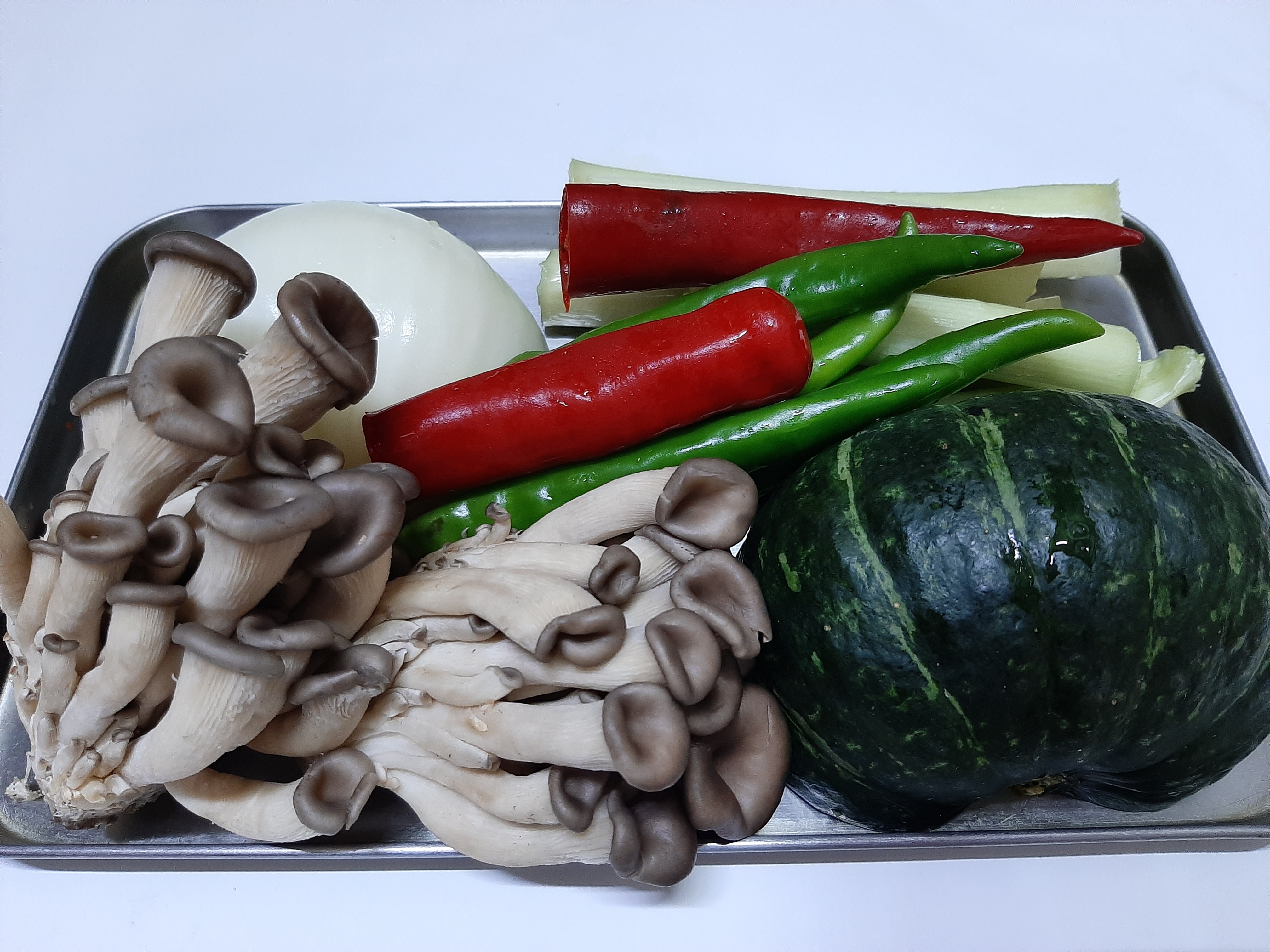 * 민어2마리,양파,단호박1/2개씩,느타리버섯