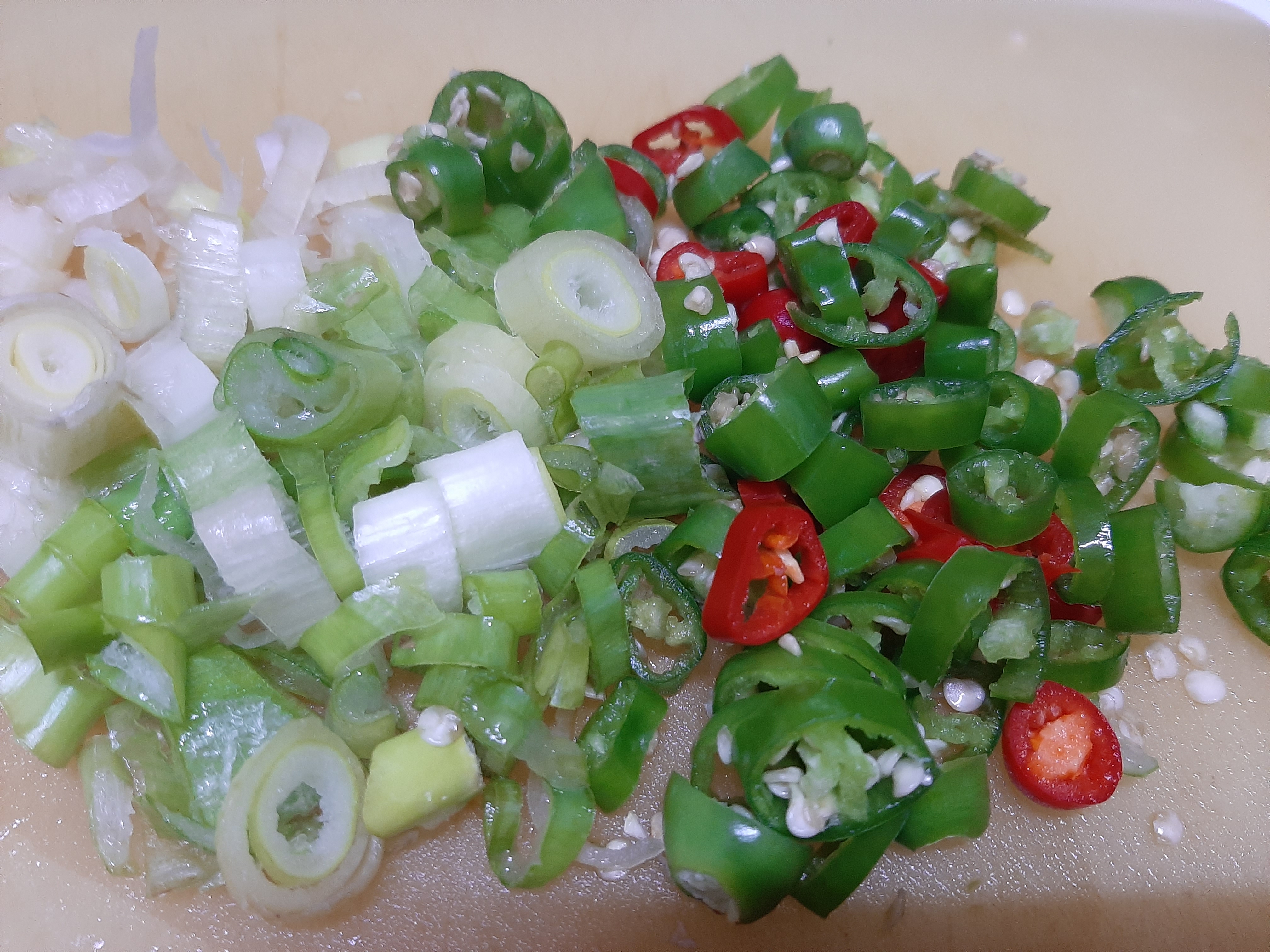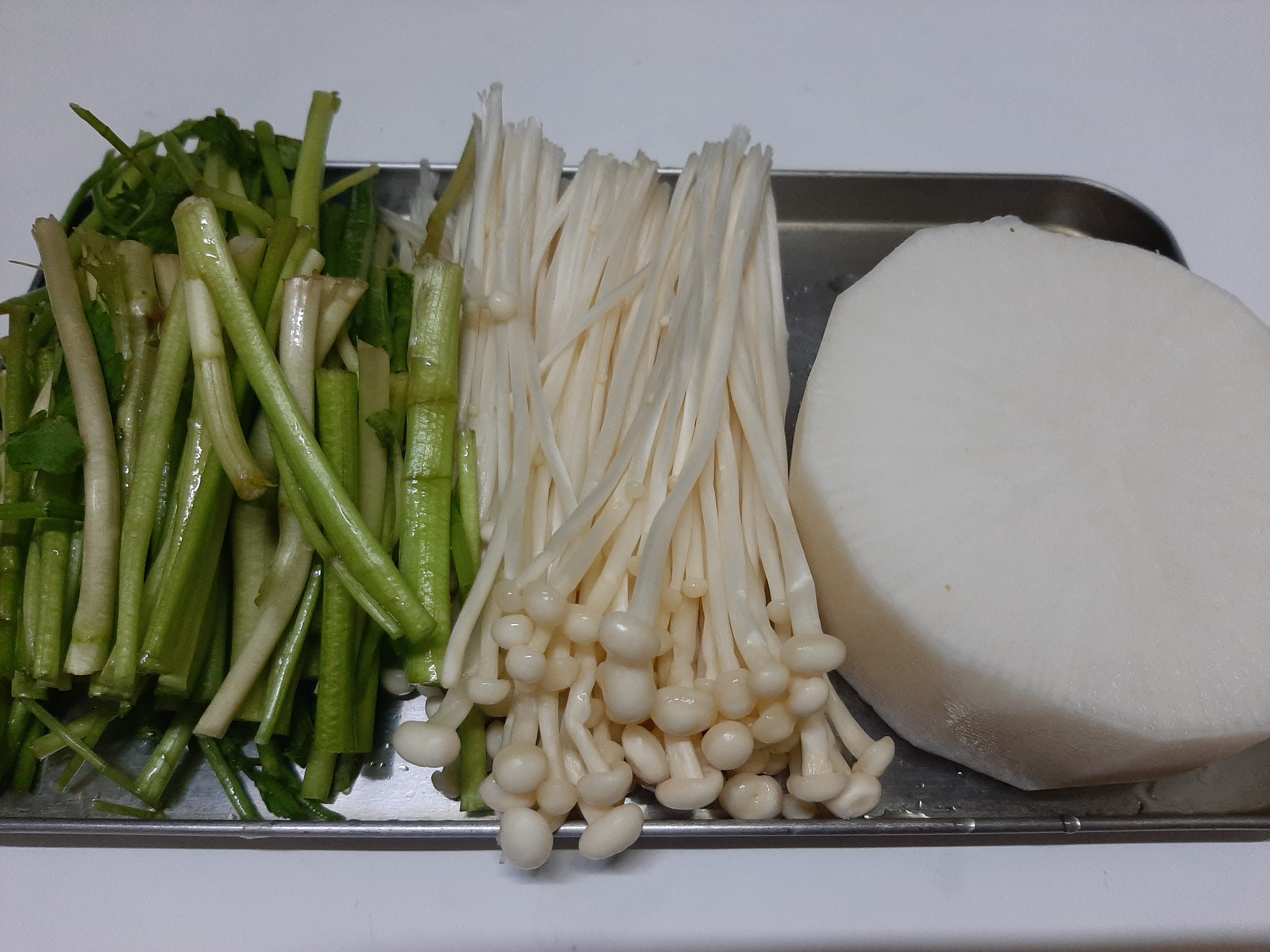 1. 청양고추, 대파는 송송썰고 무는 나박썰기로 썬다.