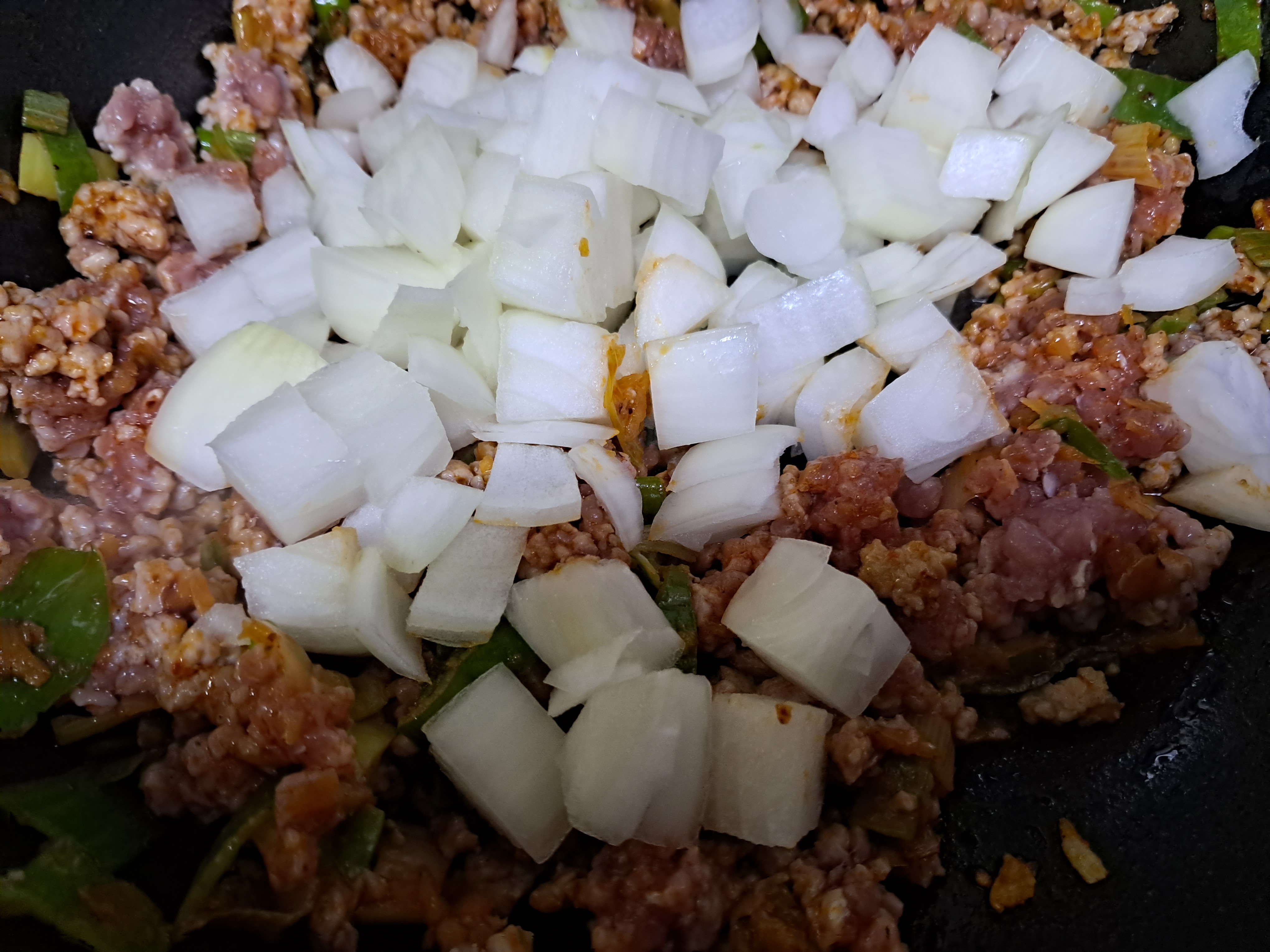 6. 5에 돼지고기를 넣어 볶다가 양파, 호박,