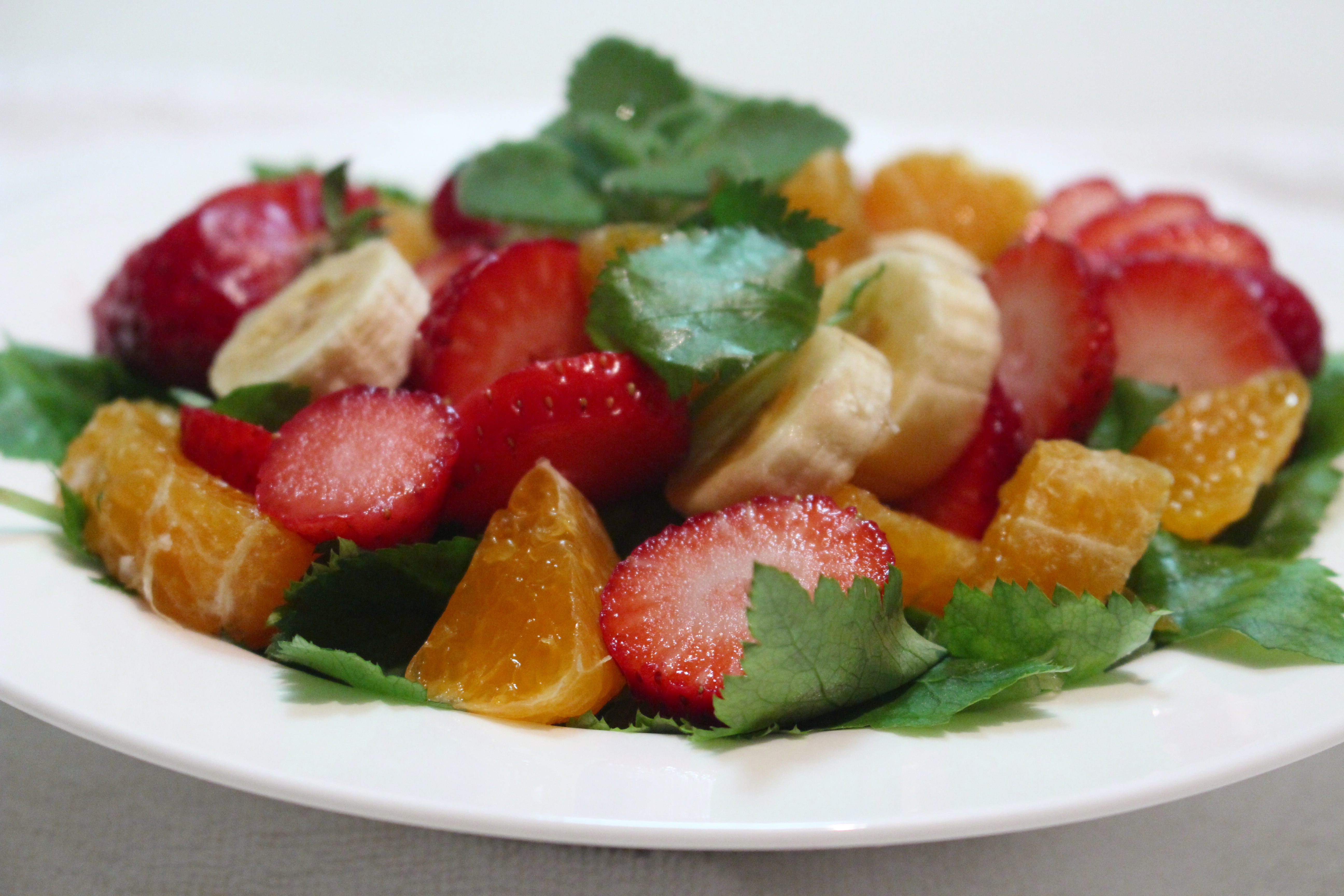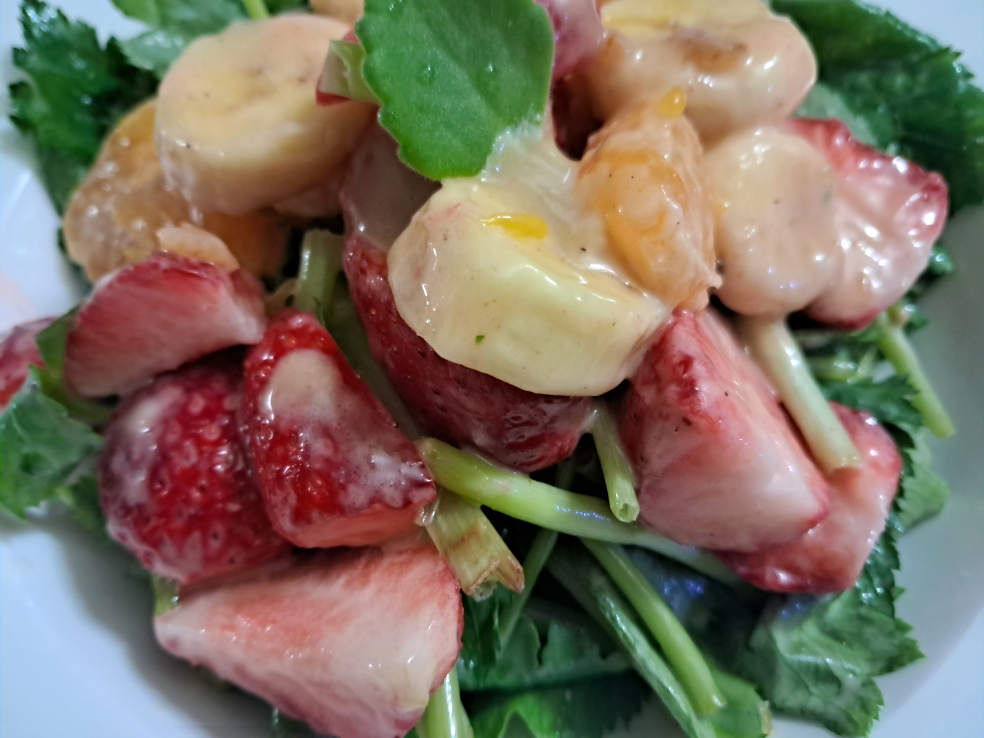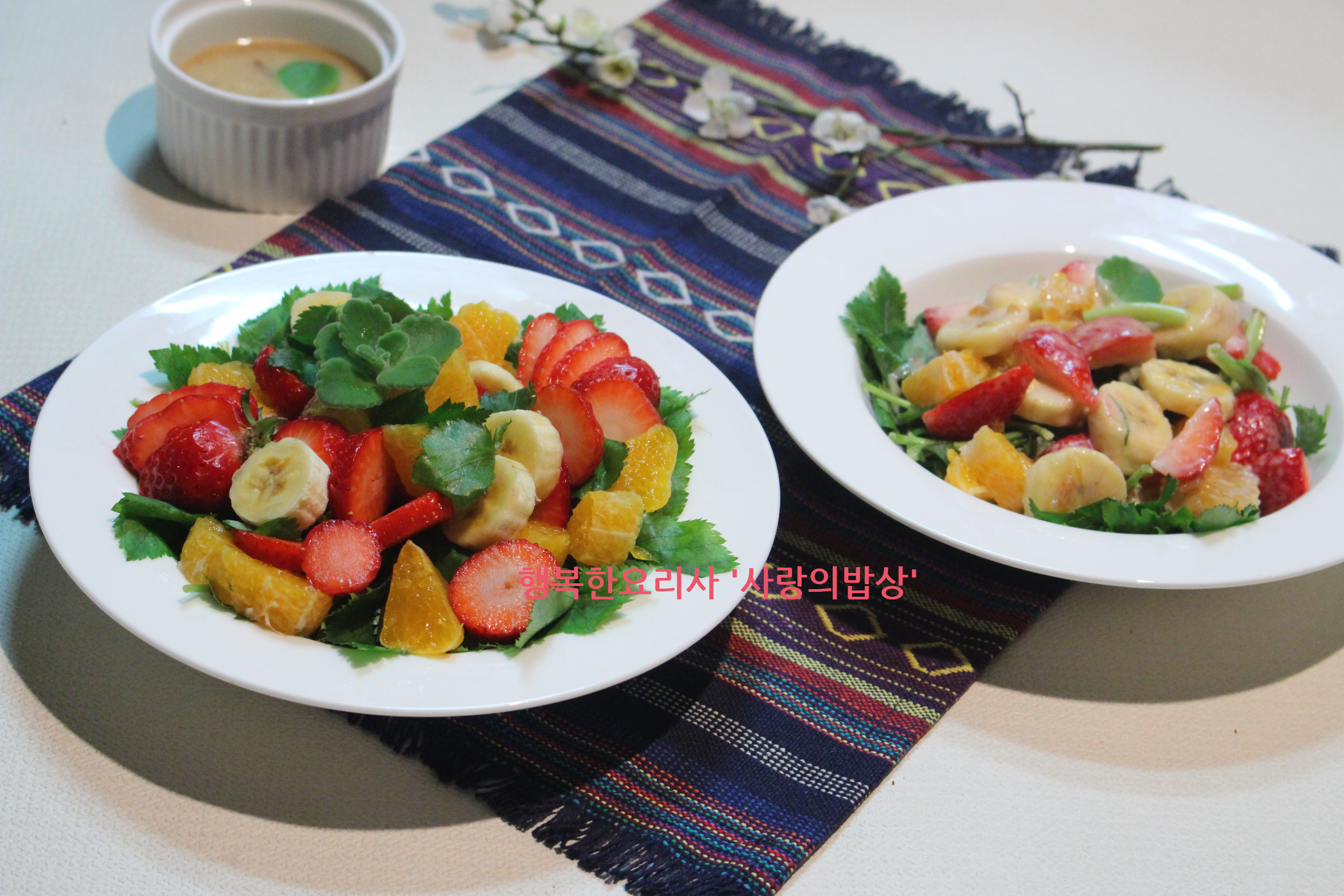 4. 접시에 참나물, 바나나, 딸기 레드향을