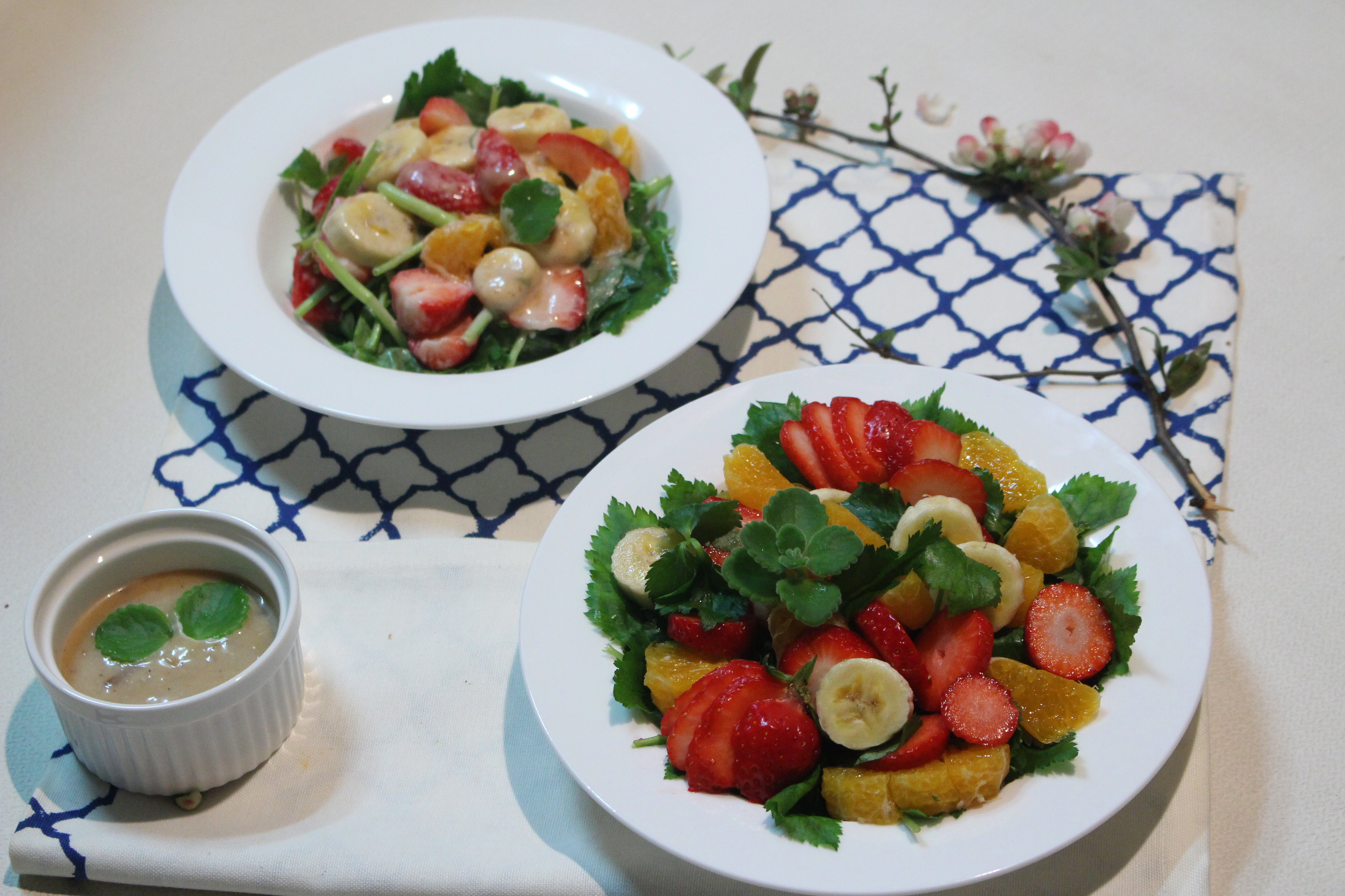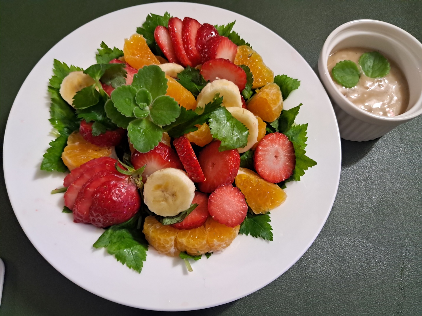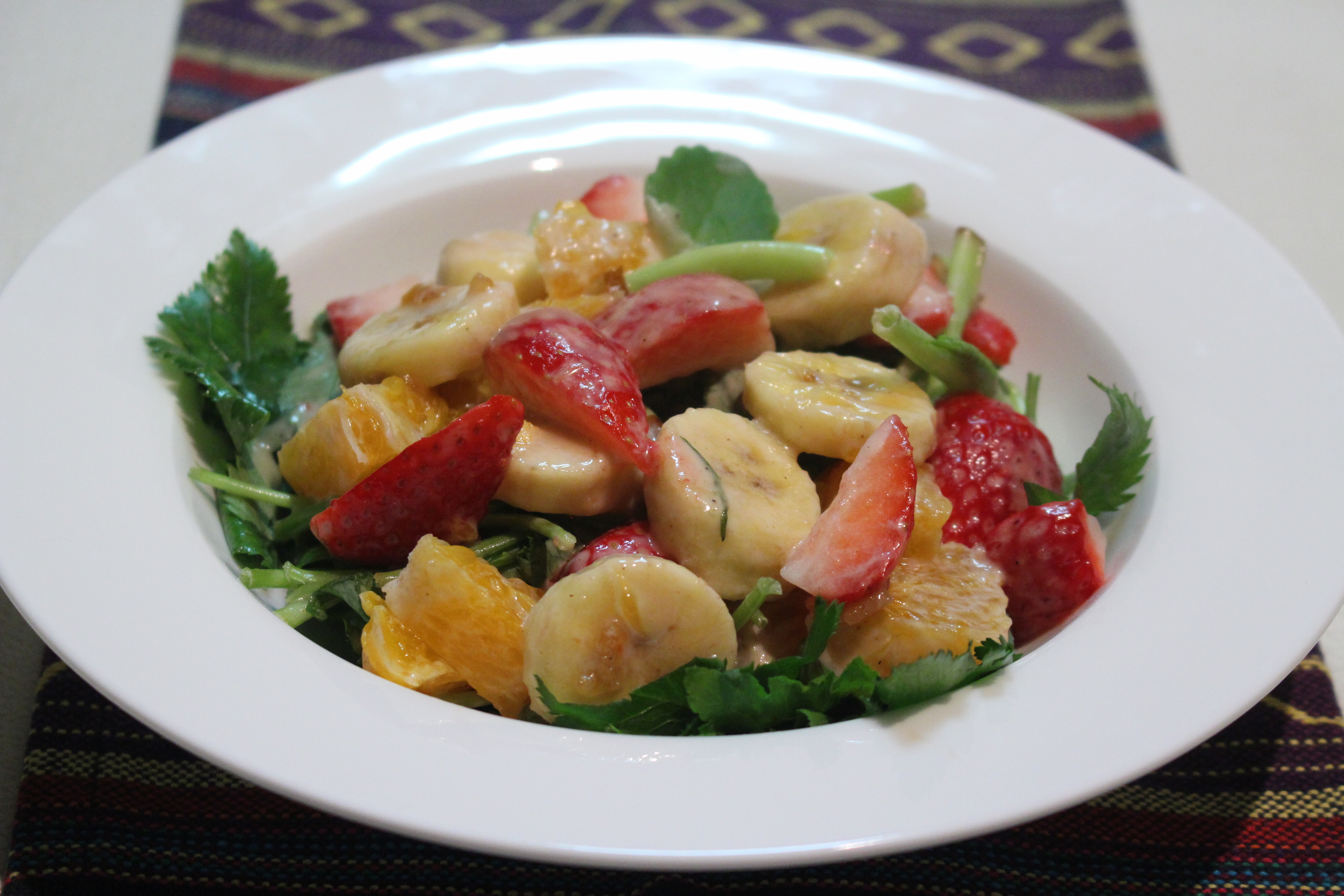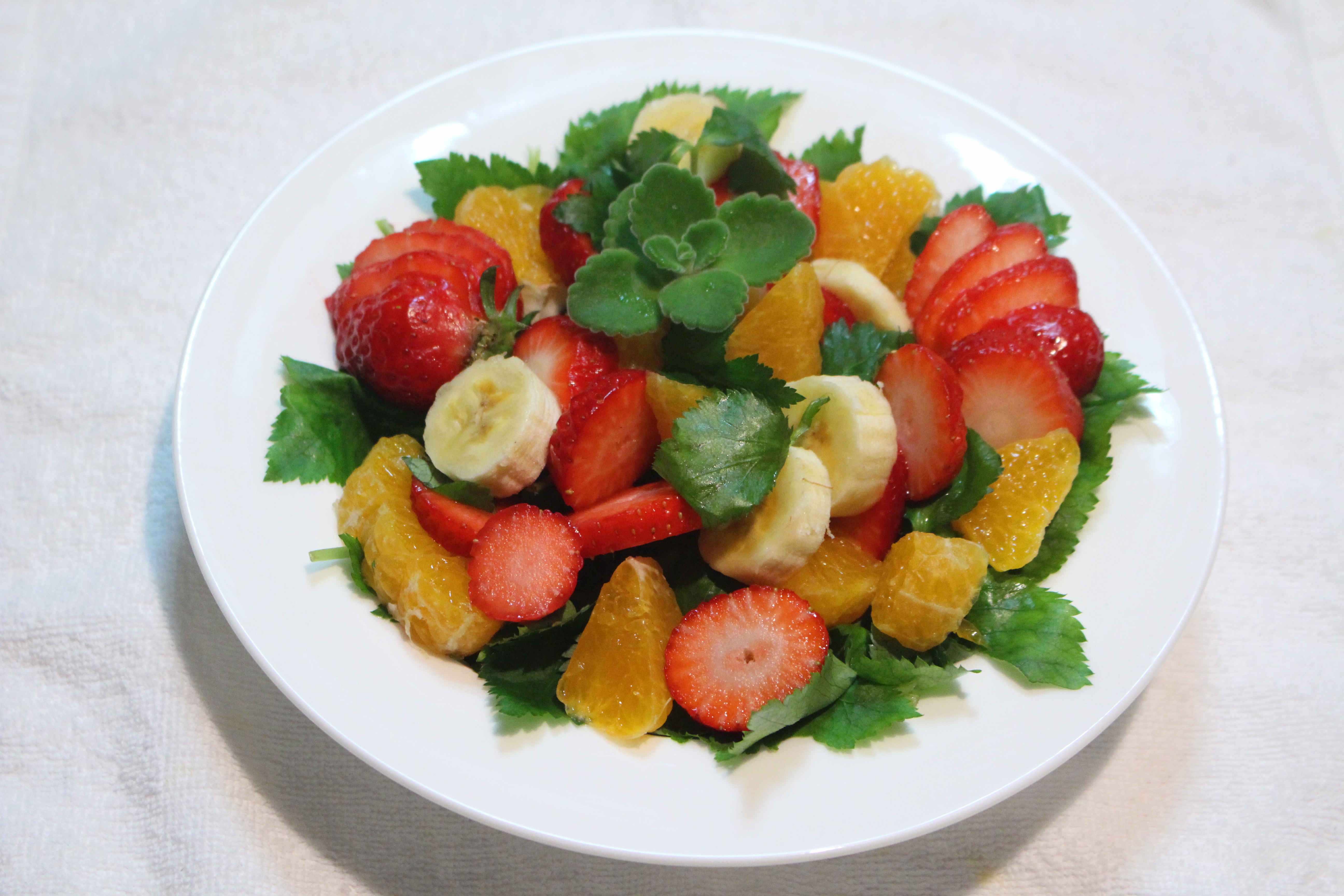 4. 접시에 참나물, 바나나, 딸기 레드향을