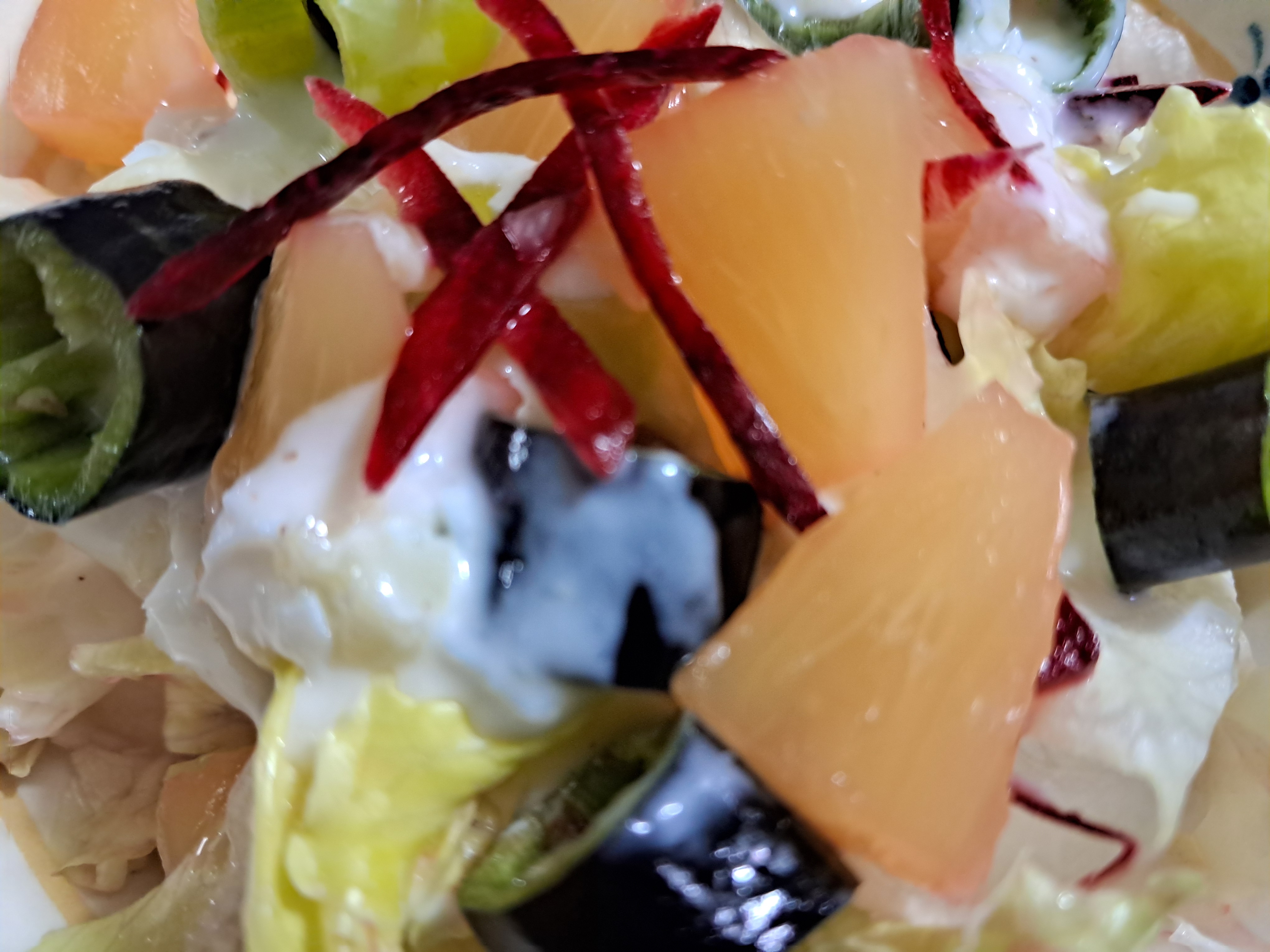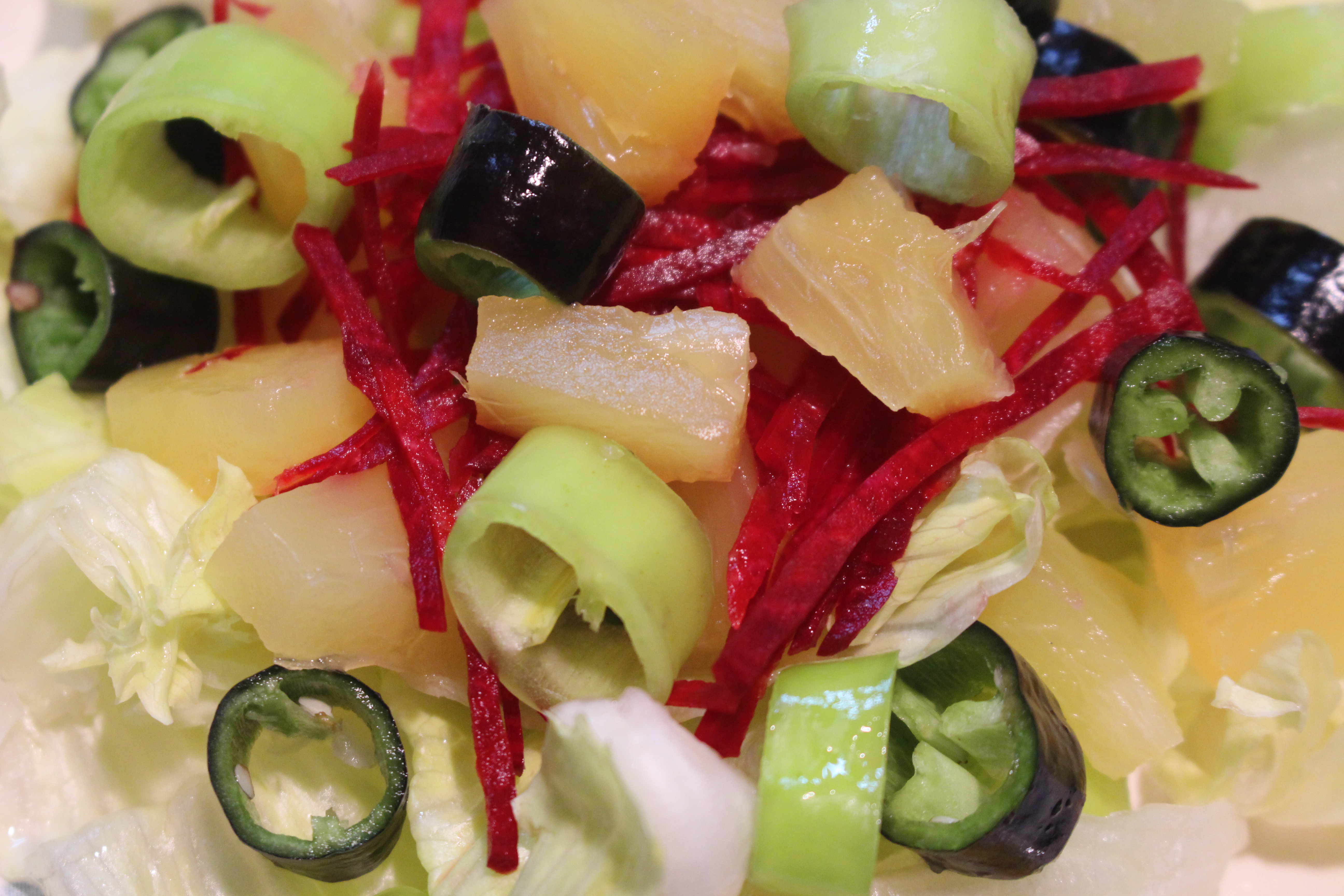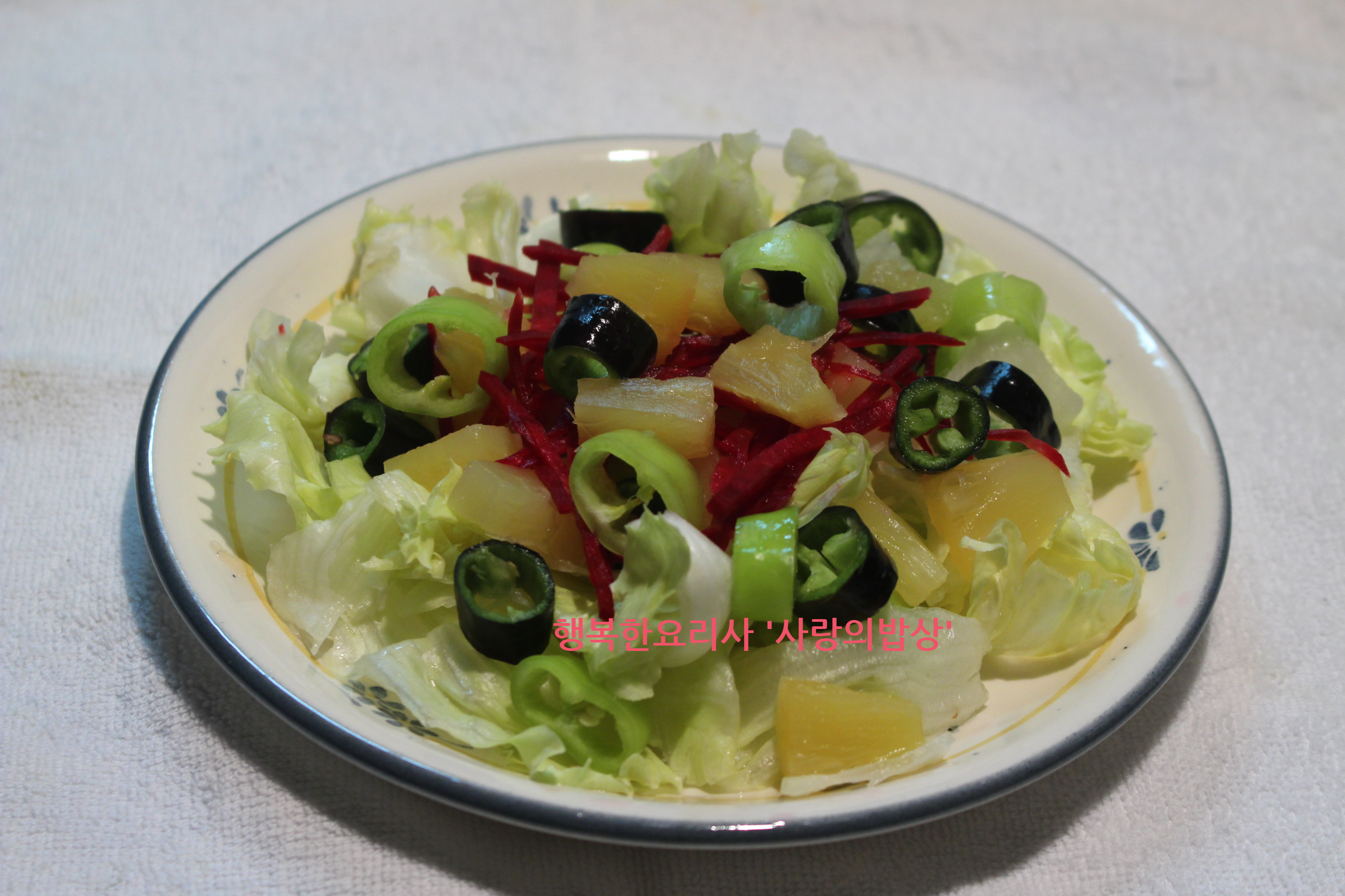 5. 접시에 양상추, 파인애플, 비트, 고추를