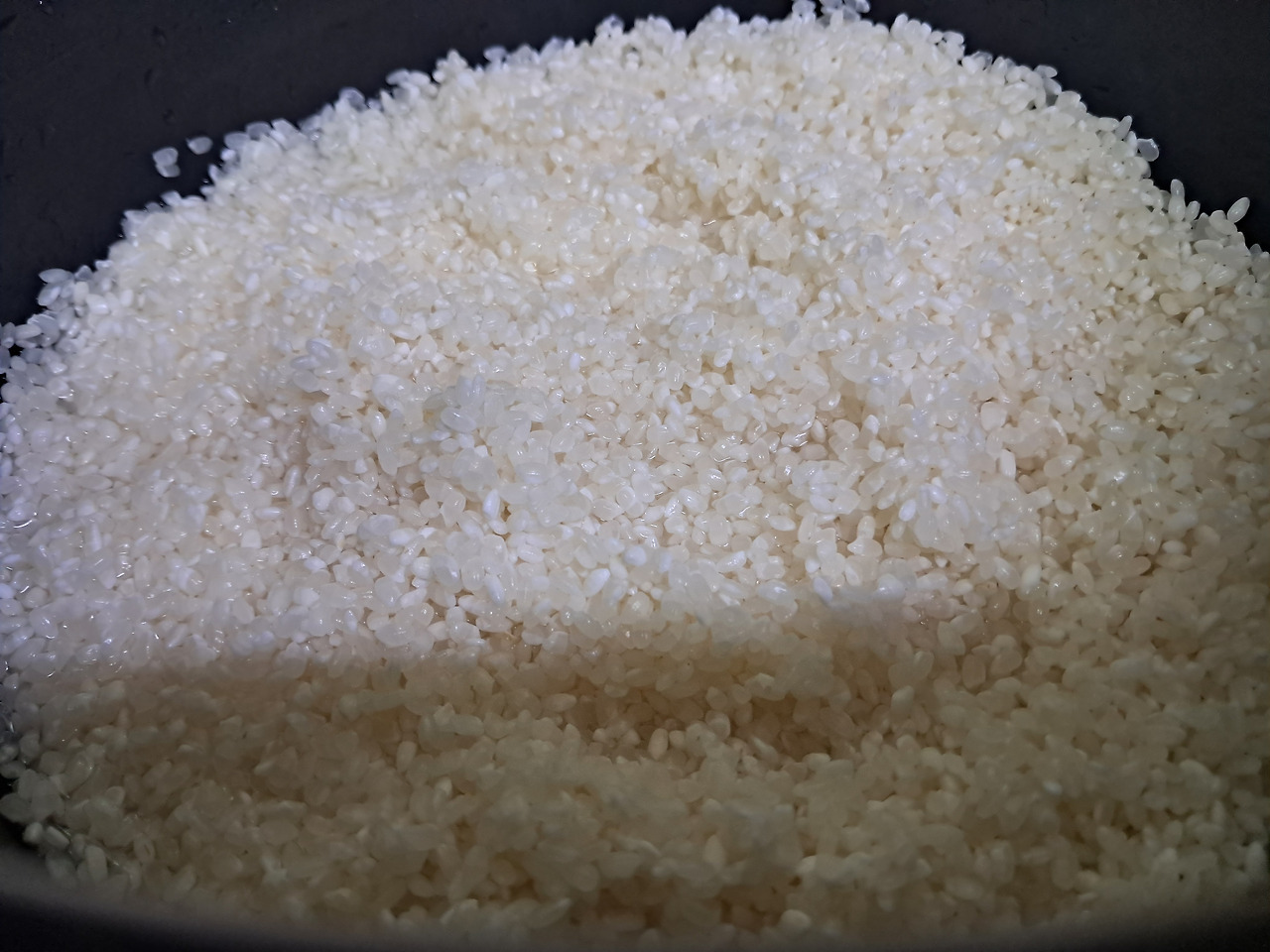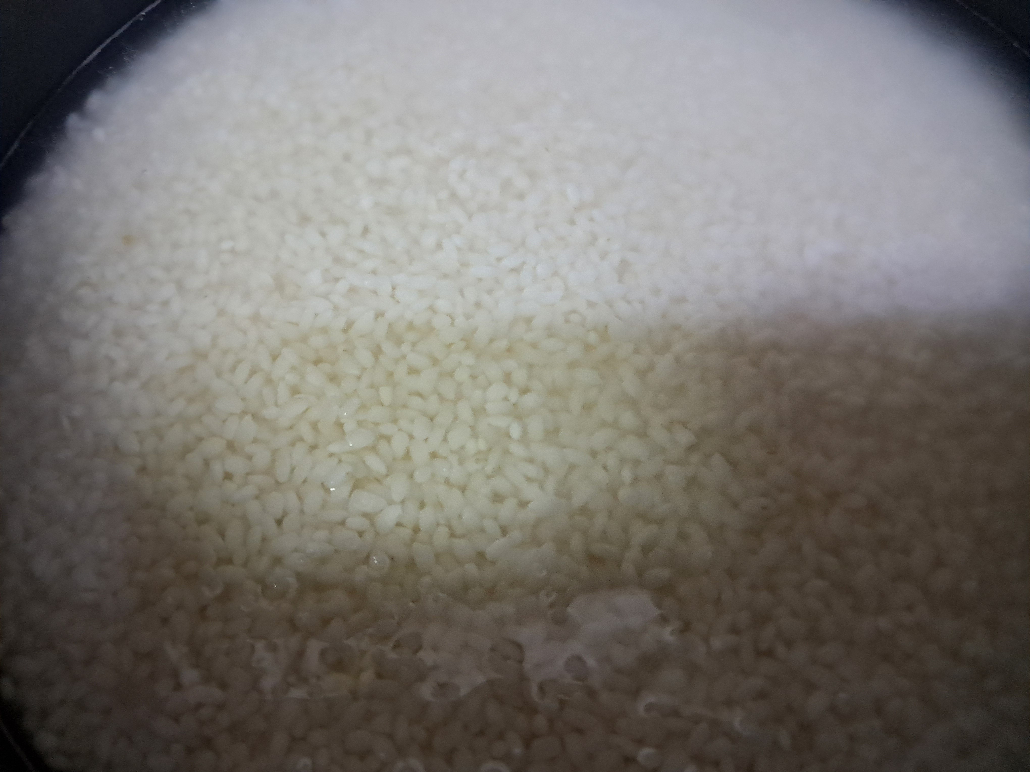 3. 불린 쌀을 전기 압력밥솥에 넣고 물을