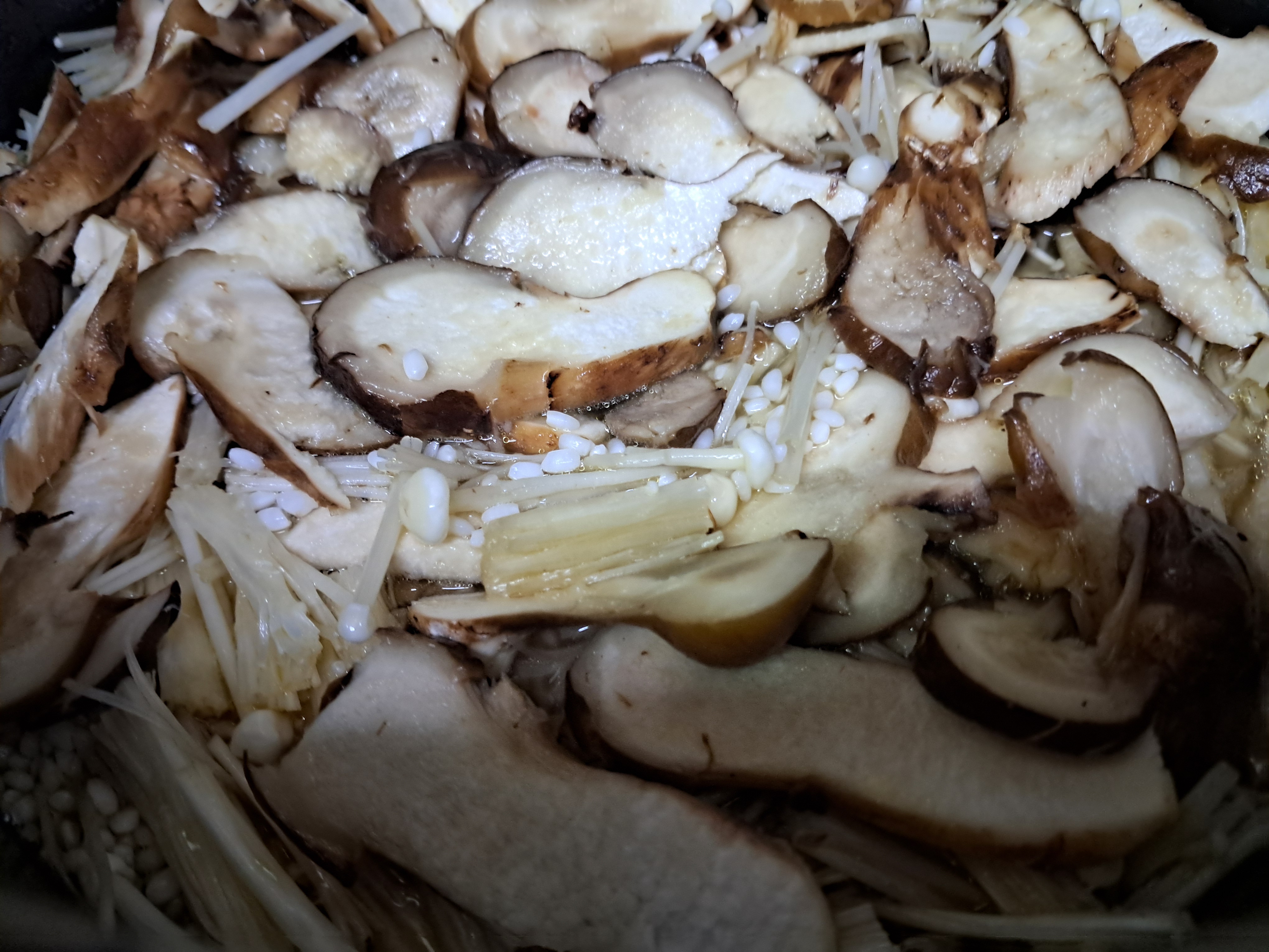 4. 송이와 팽이버섯을 쌀 위에 얹고