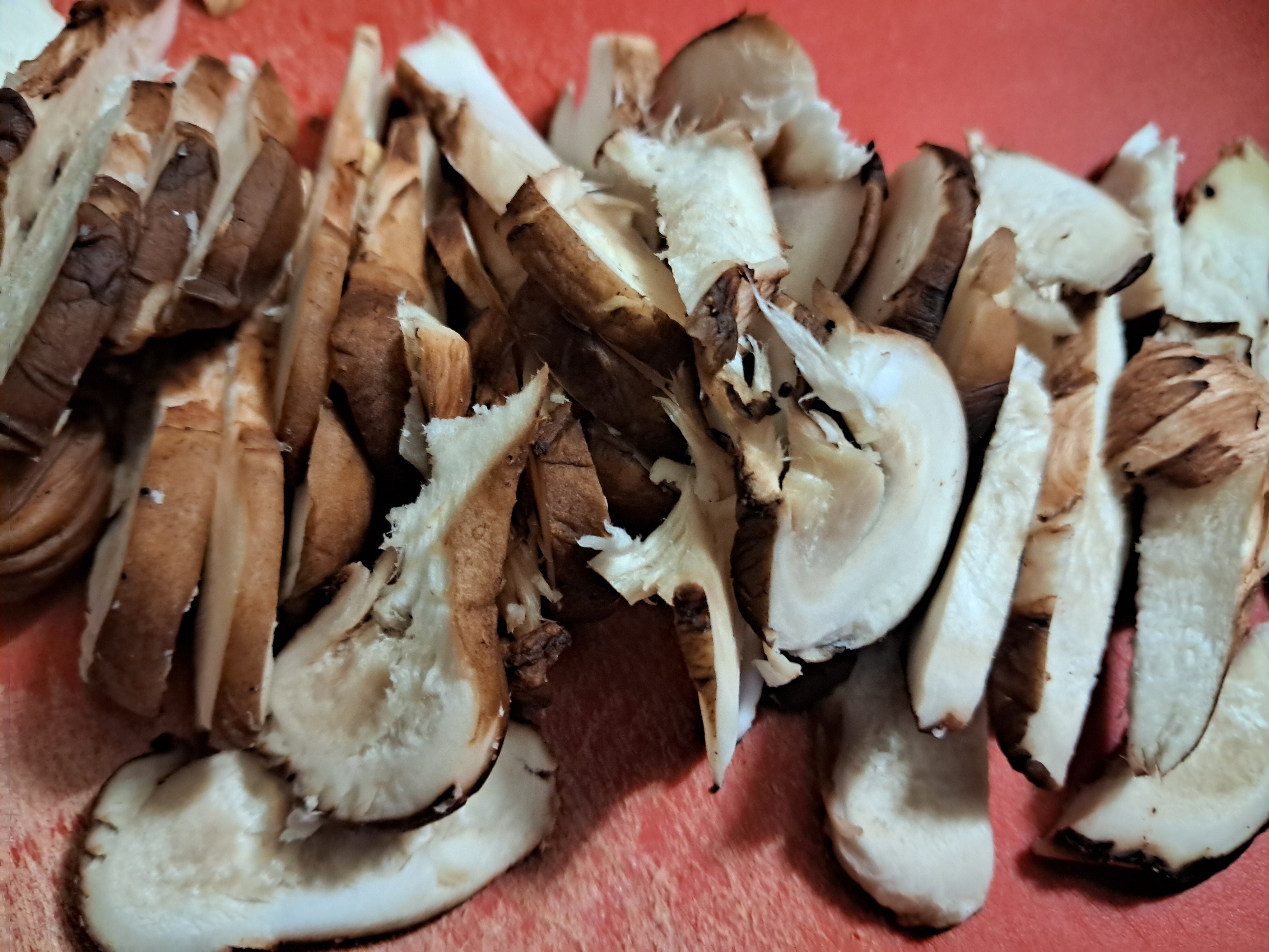 2. 손질한 송이버섯은 굵게 채 썰고 밑동을
