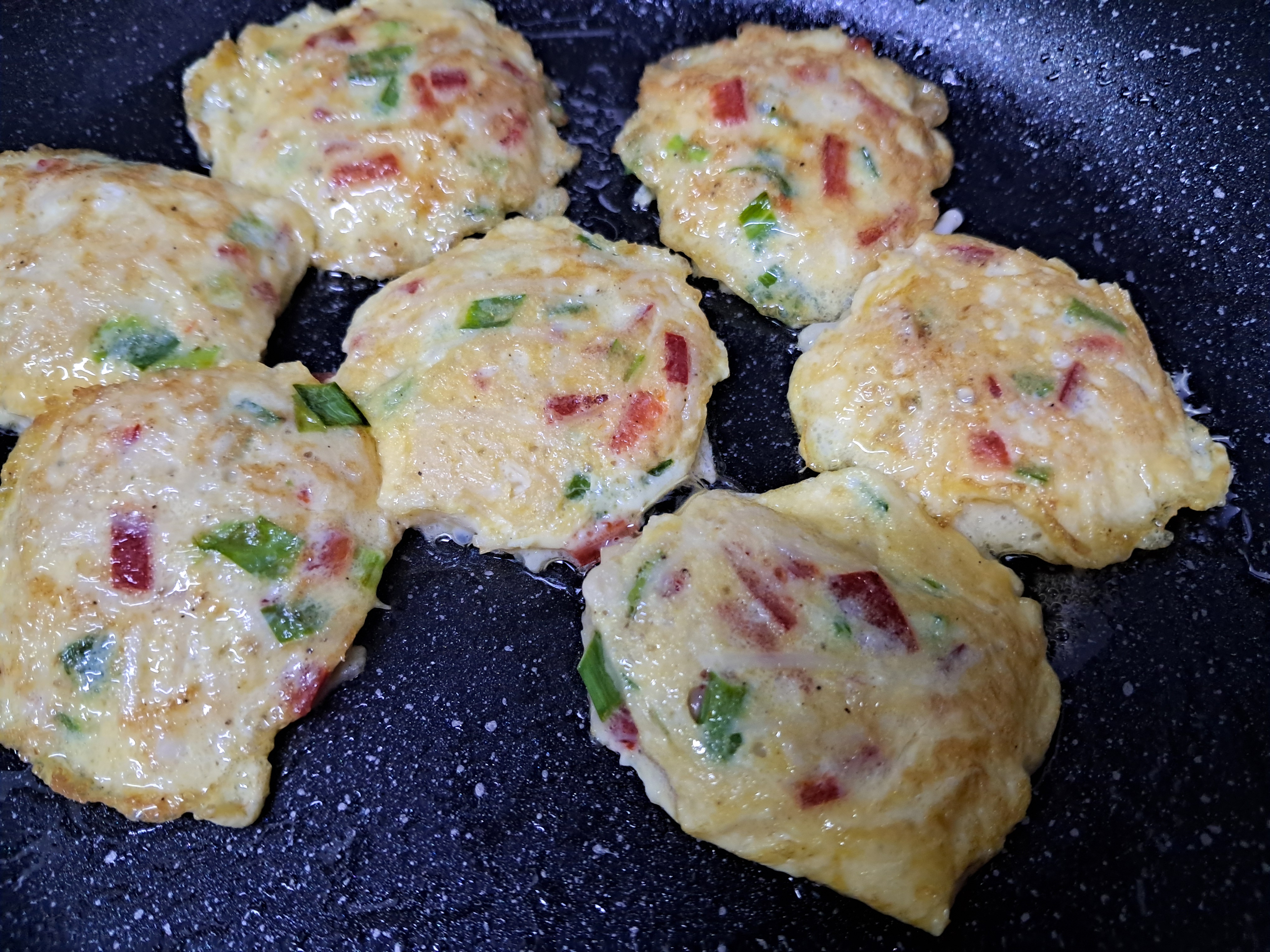 2. 팬에 포도씨유를 두르고 한숟가락씩