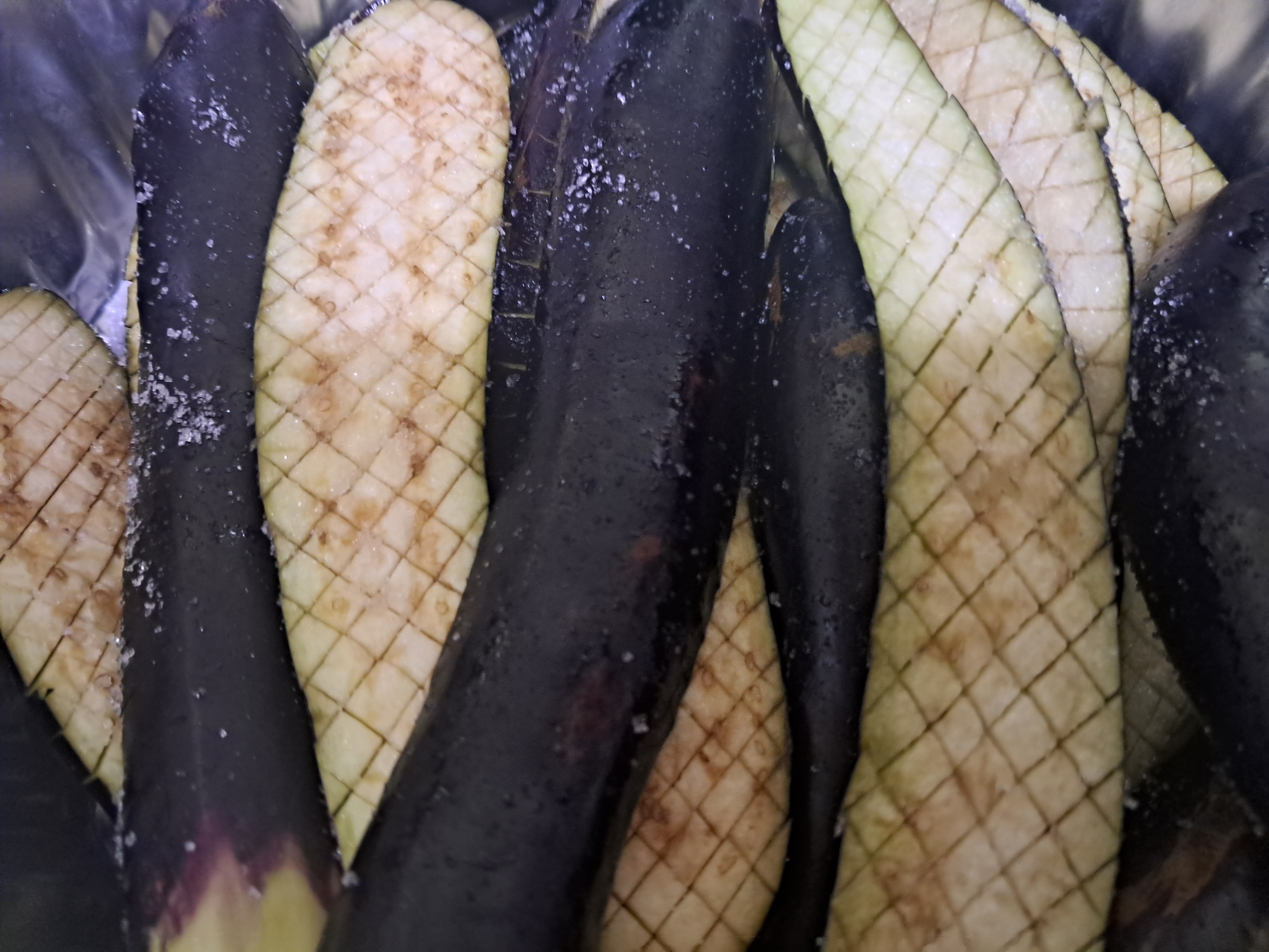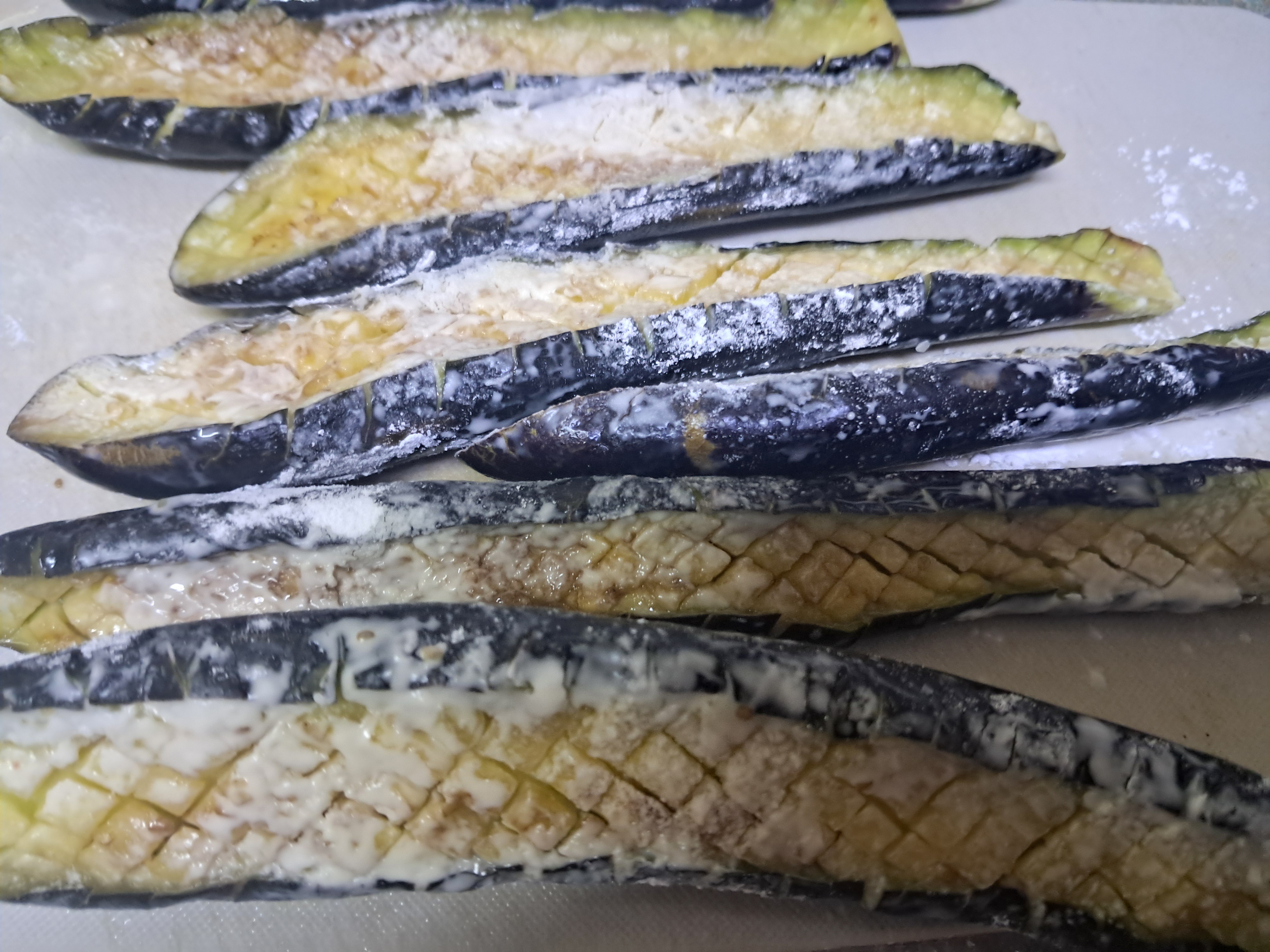 칼집을 넣고 소금, 설탕에 재워둔다.