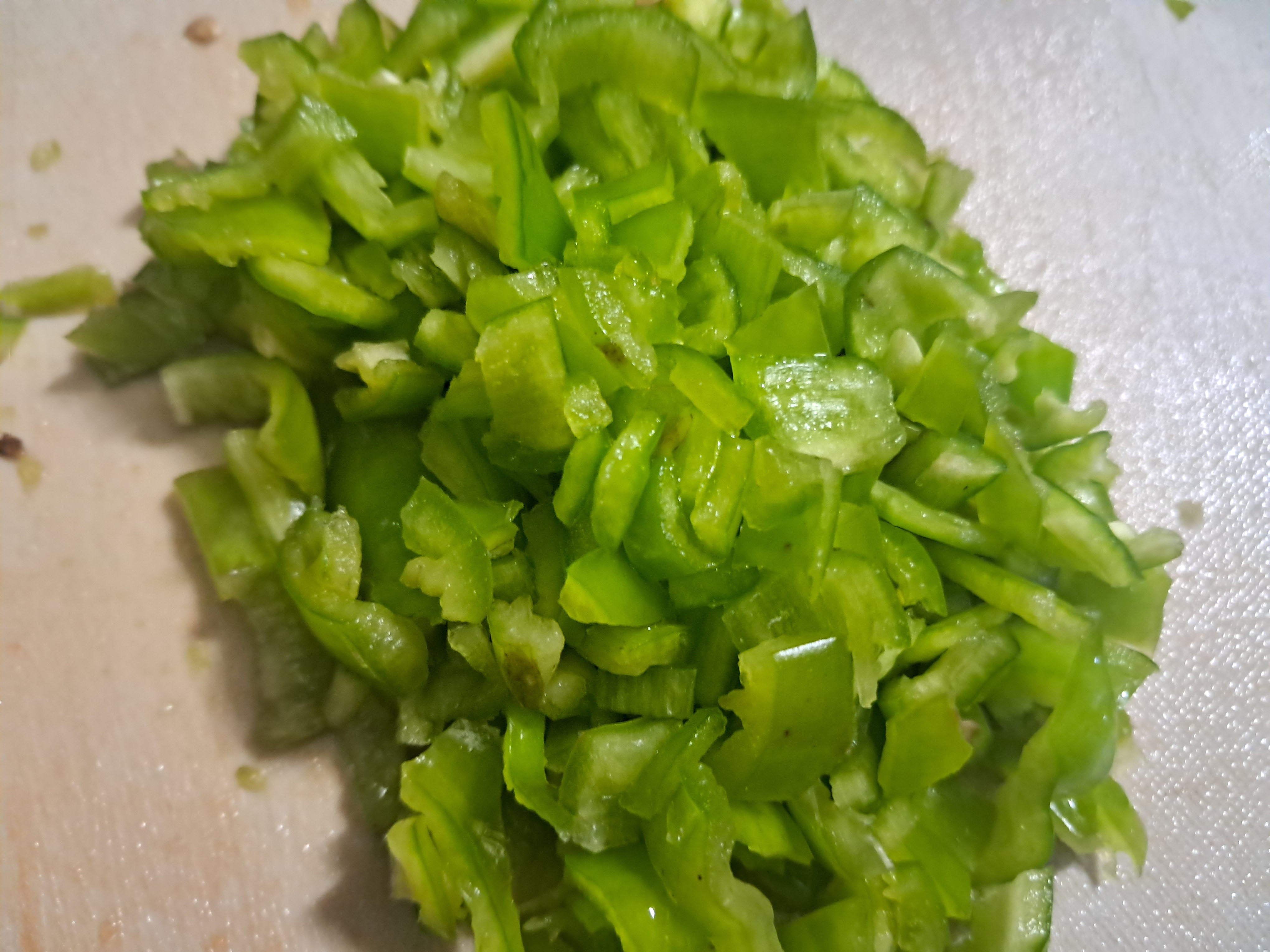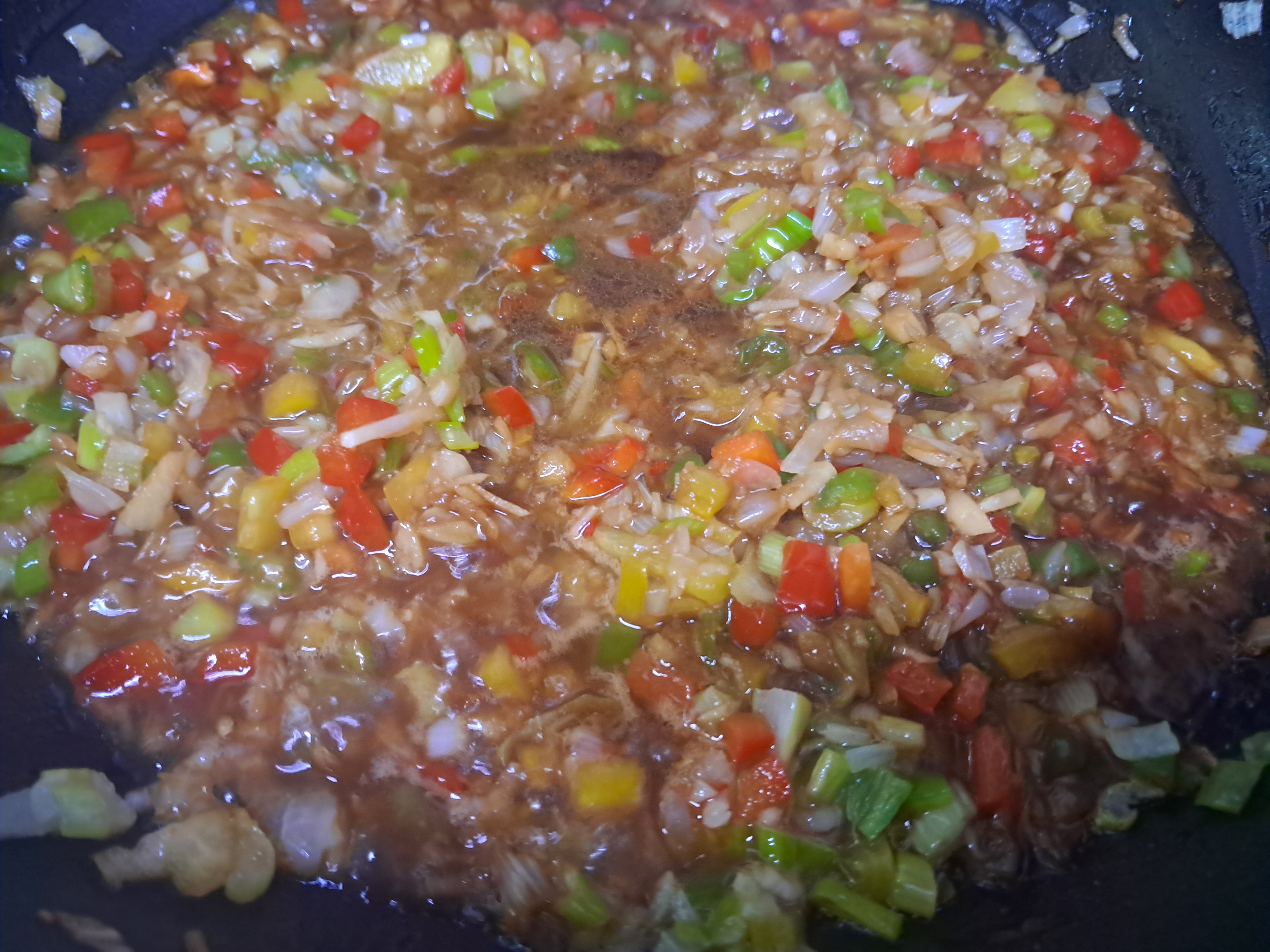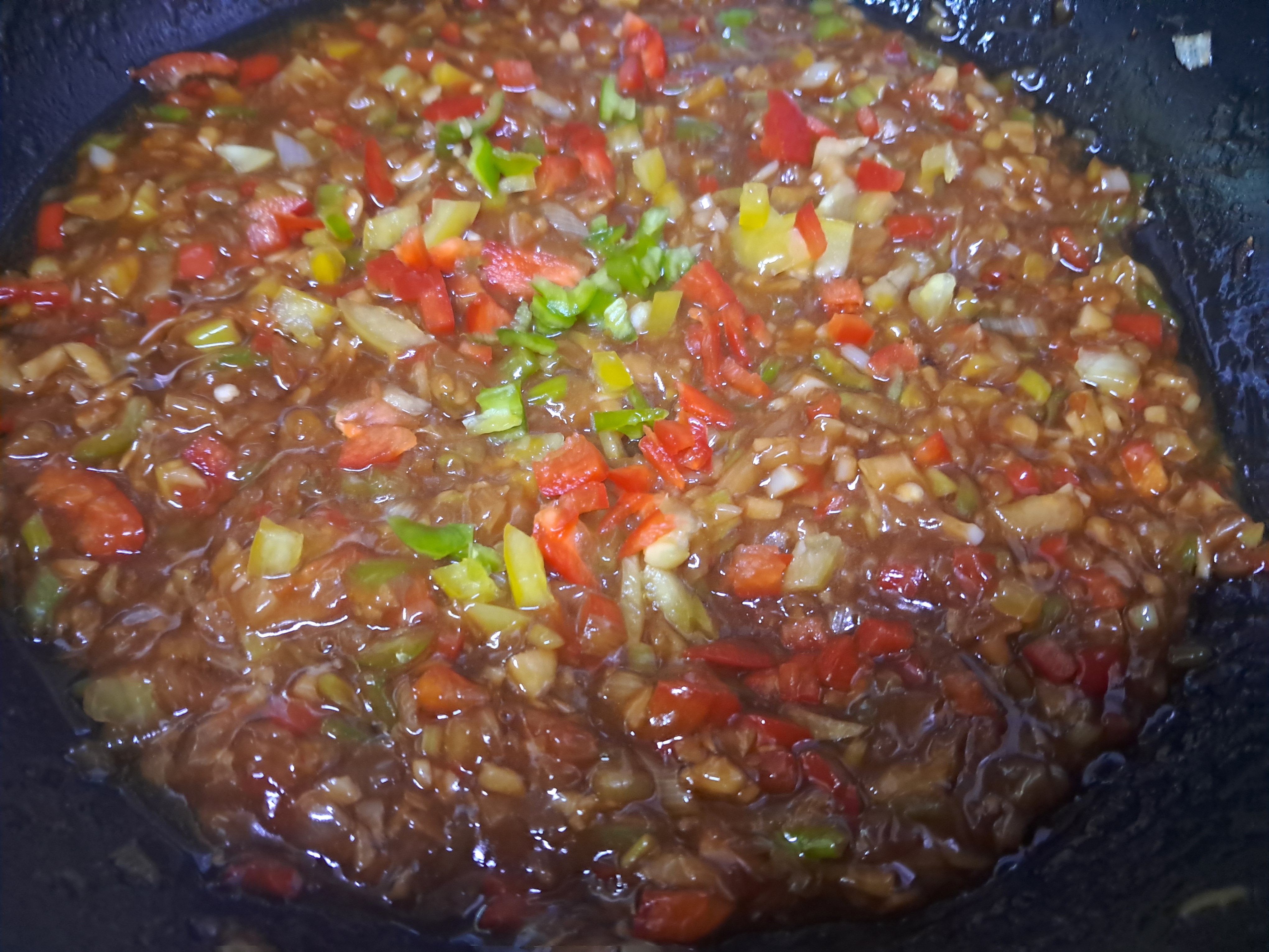 양파를 볶은 후 파프리카, 고추를 넣어 볶는다.
