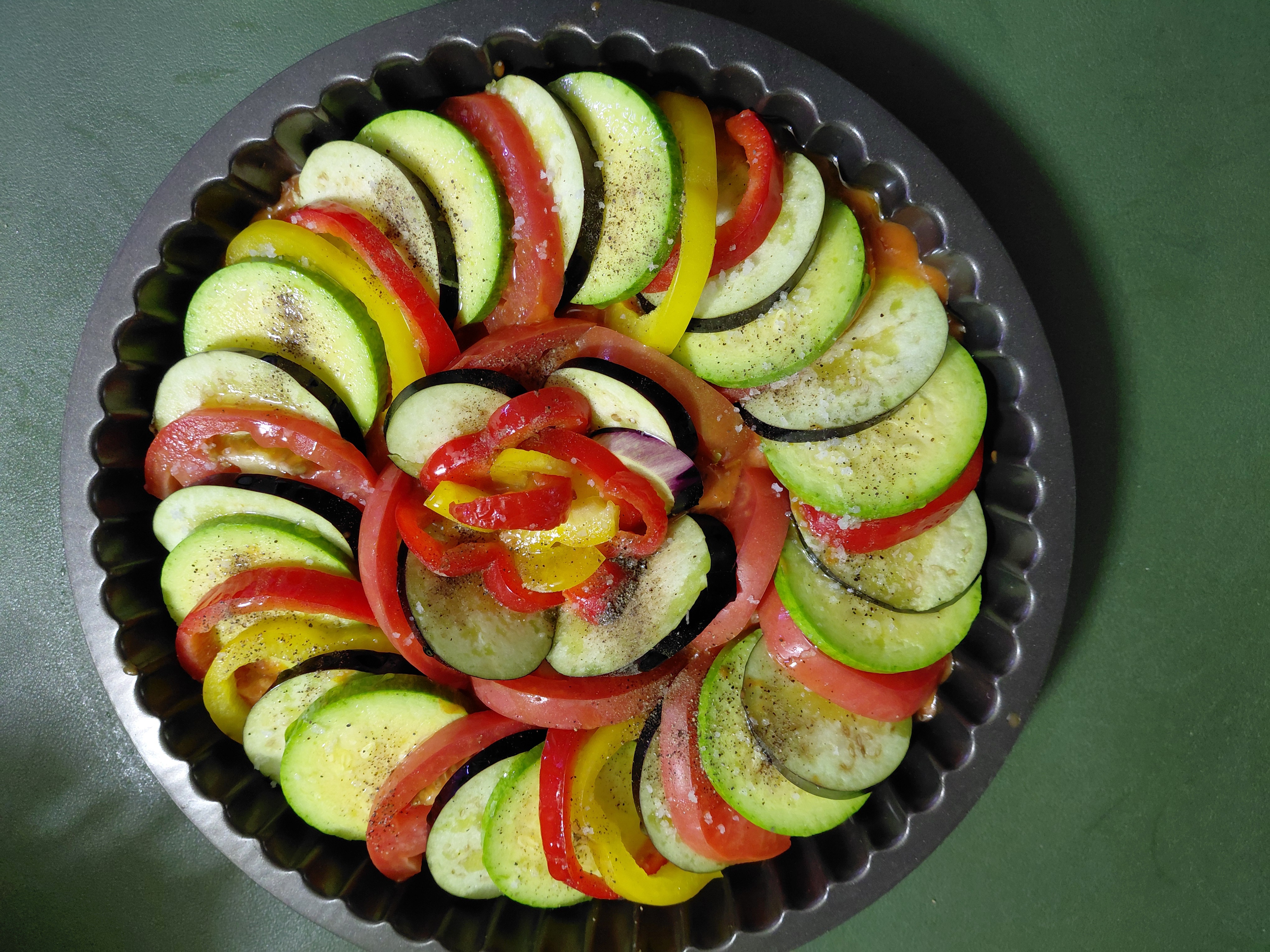1. 손질한 가지, 토마토, 호박, 파프리카는