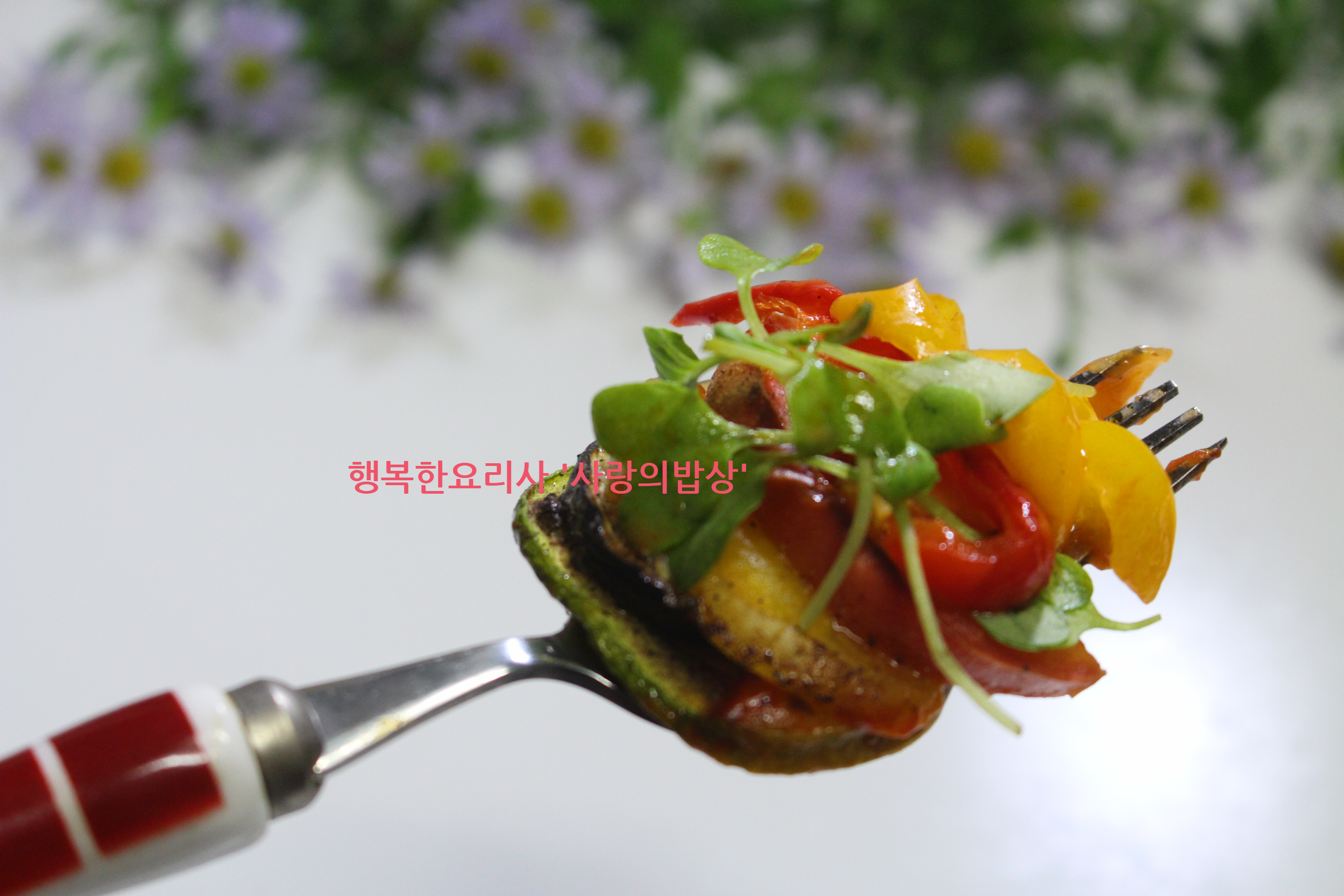 호박, 피망, 토마토 등의 채소에 허브와