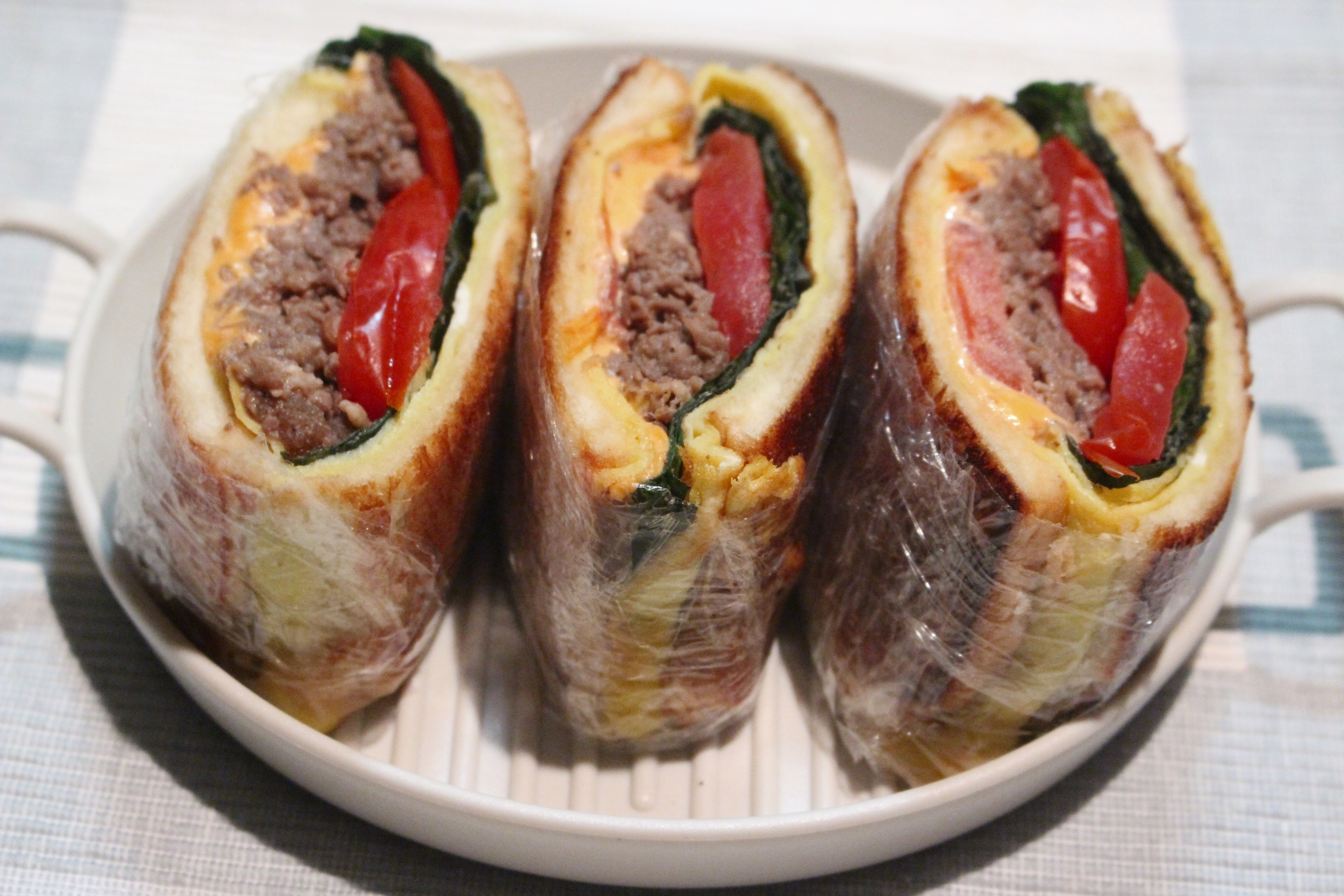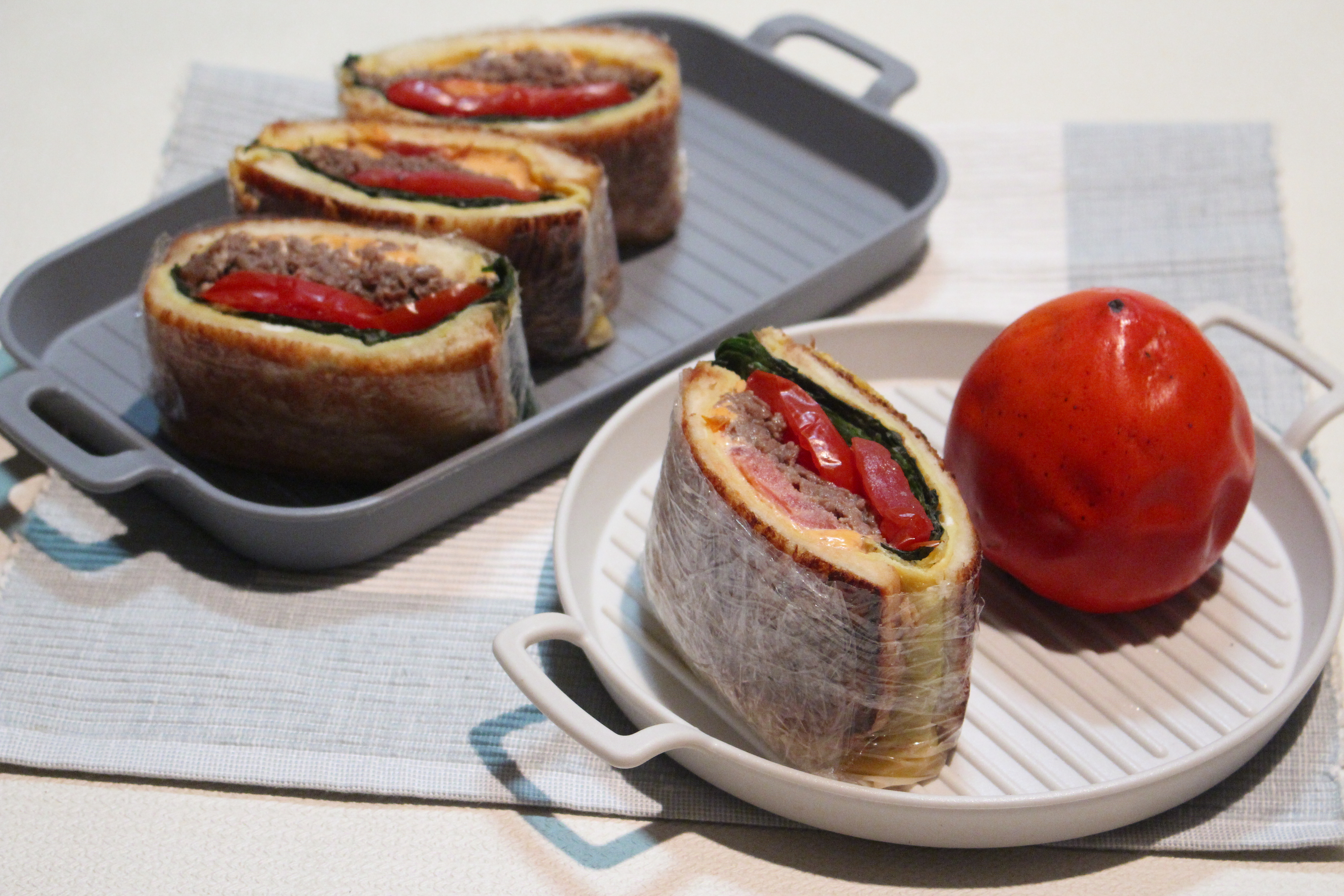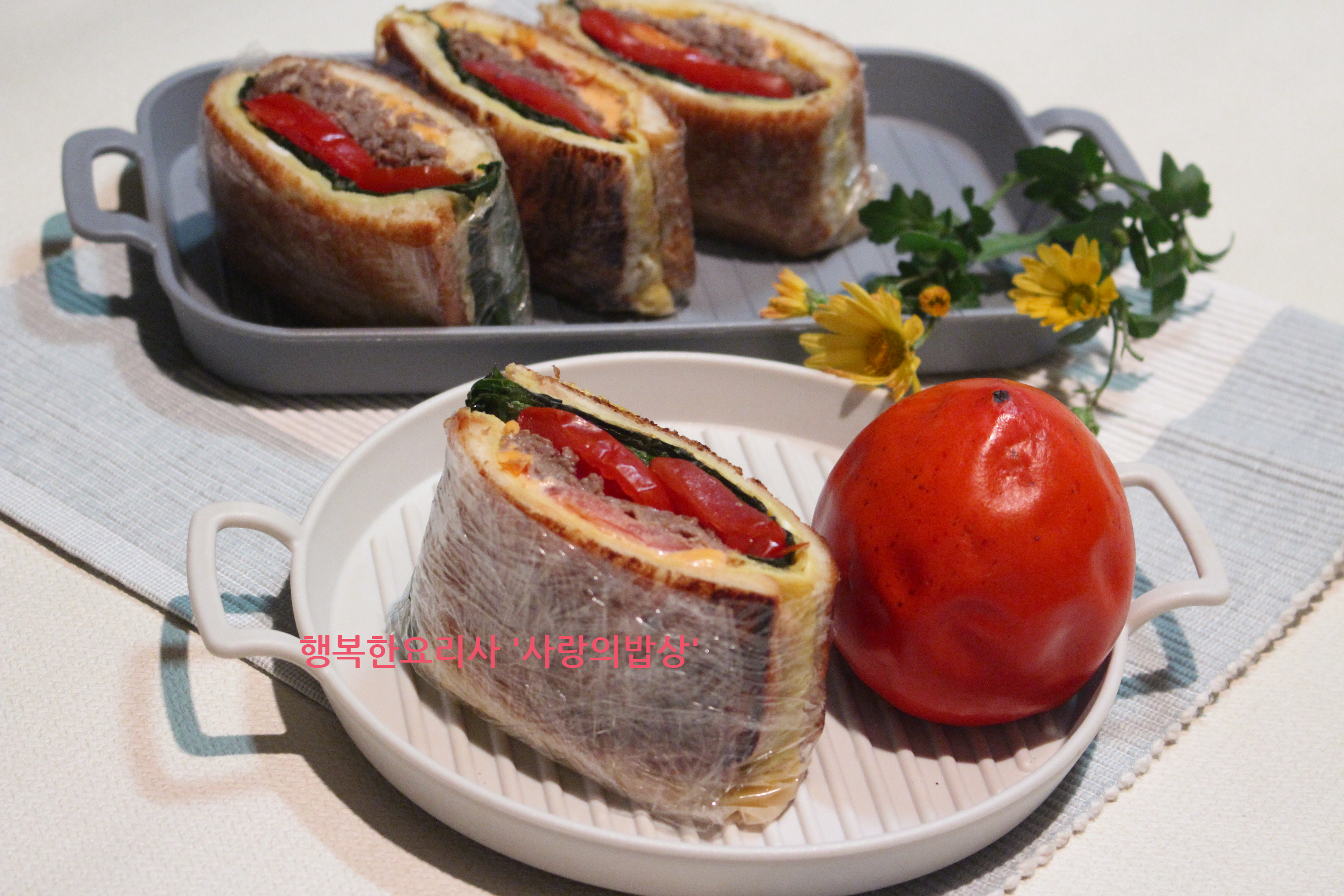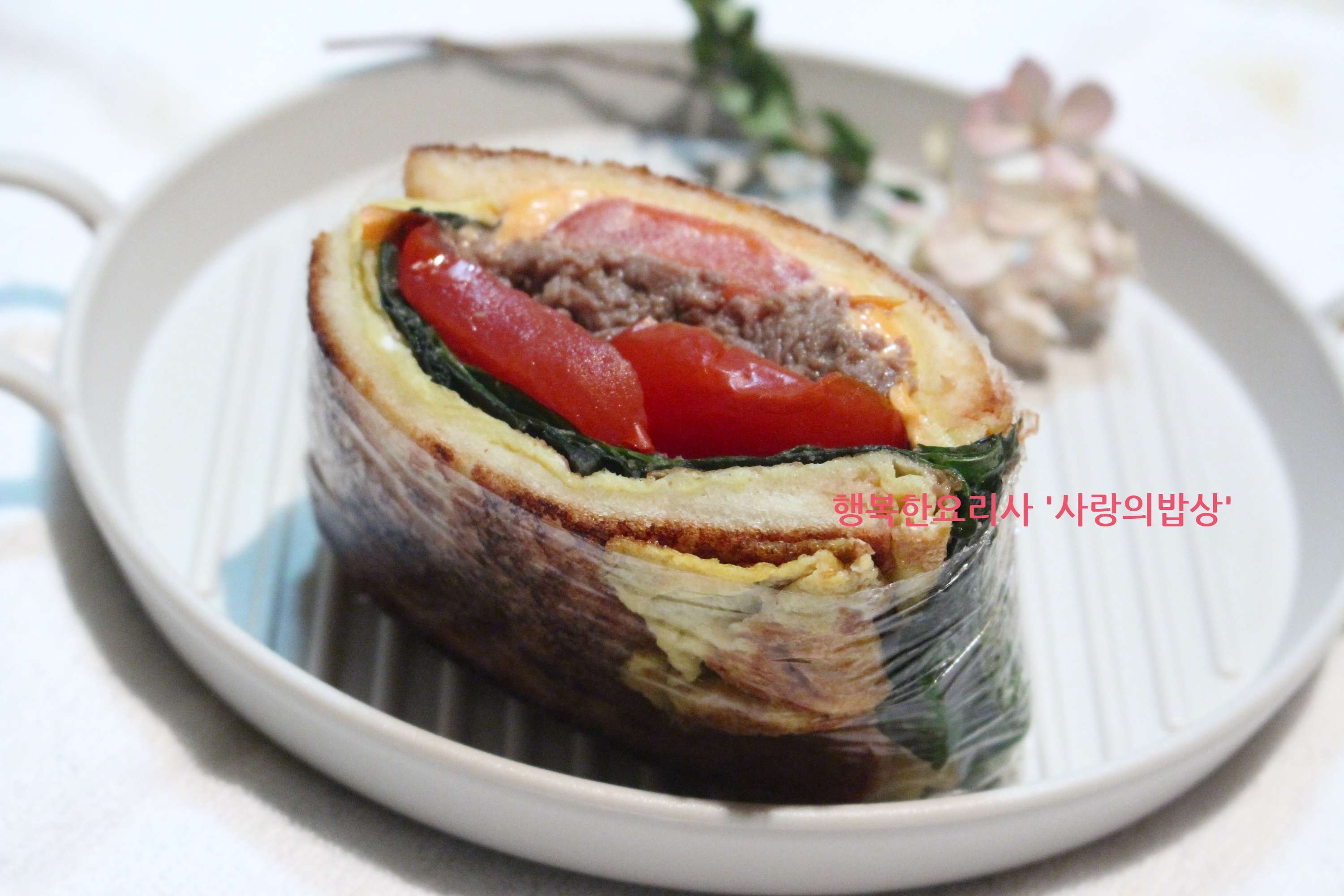5. 한쪽 식빵 위에 깻잎, 불고기, 토마토,