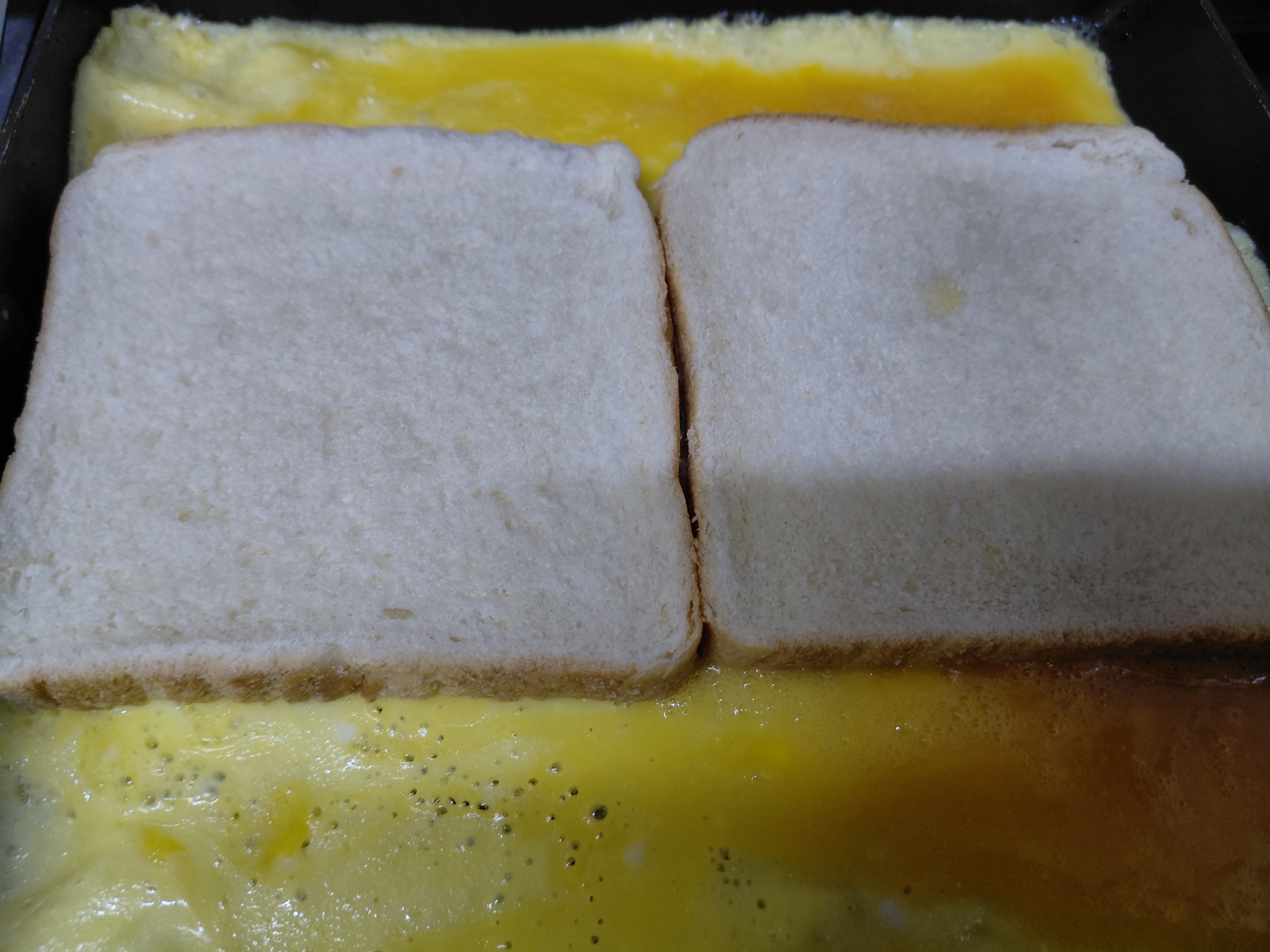 부은 후 식빵 2장을 올린다.