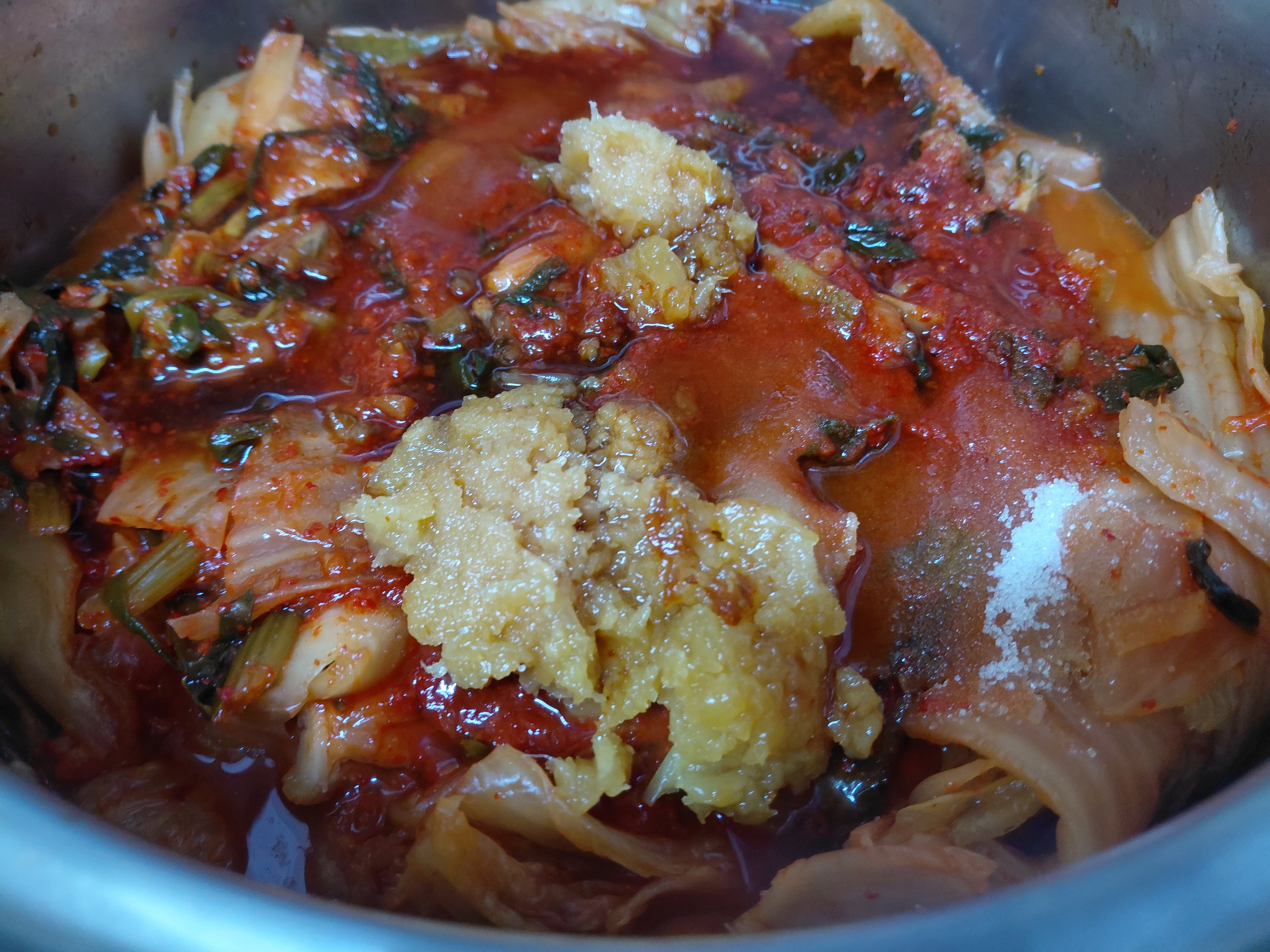 자른 후 2의 등갈비, 설탕, 김치국물을
