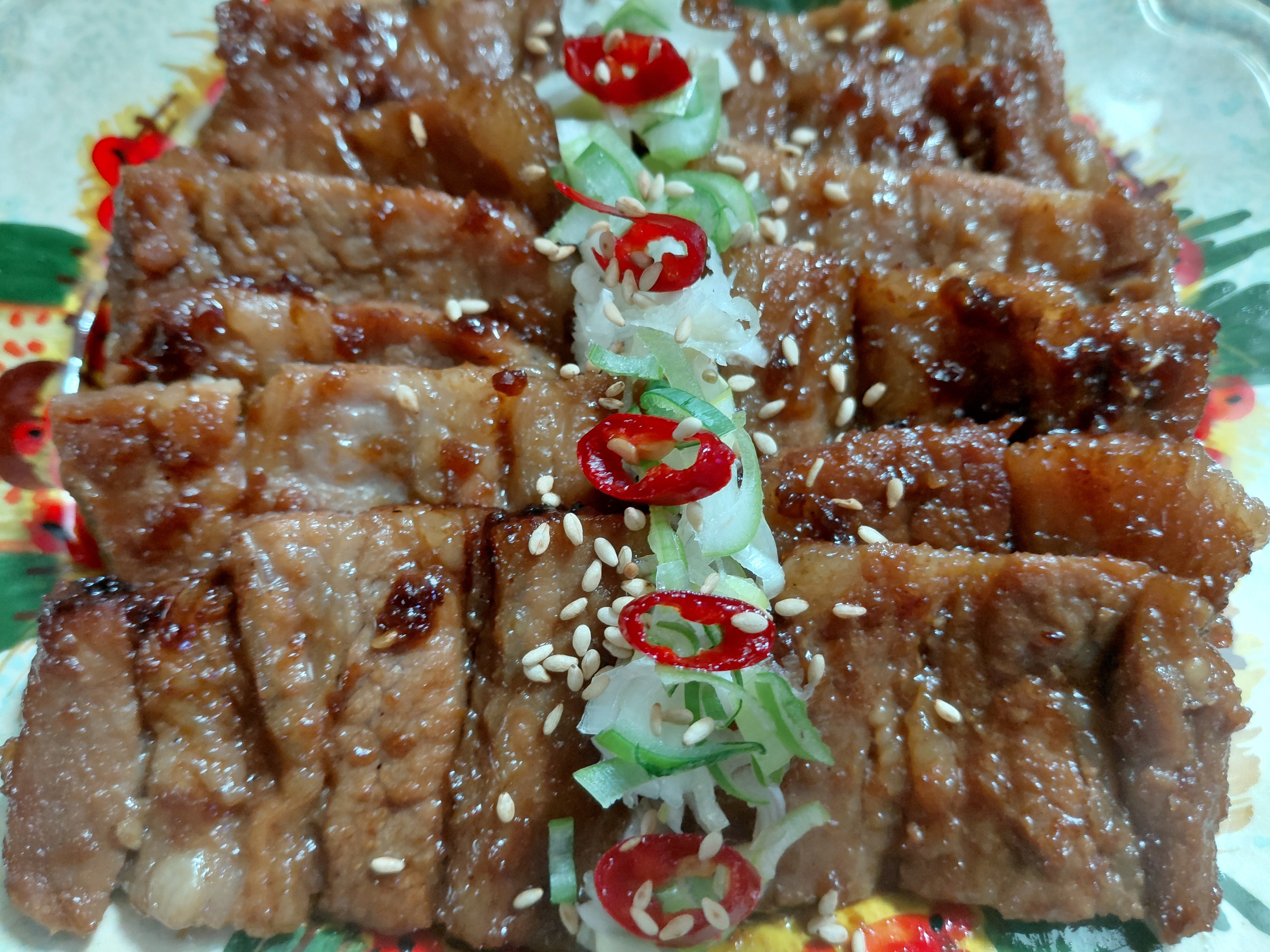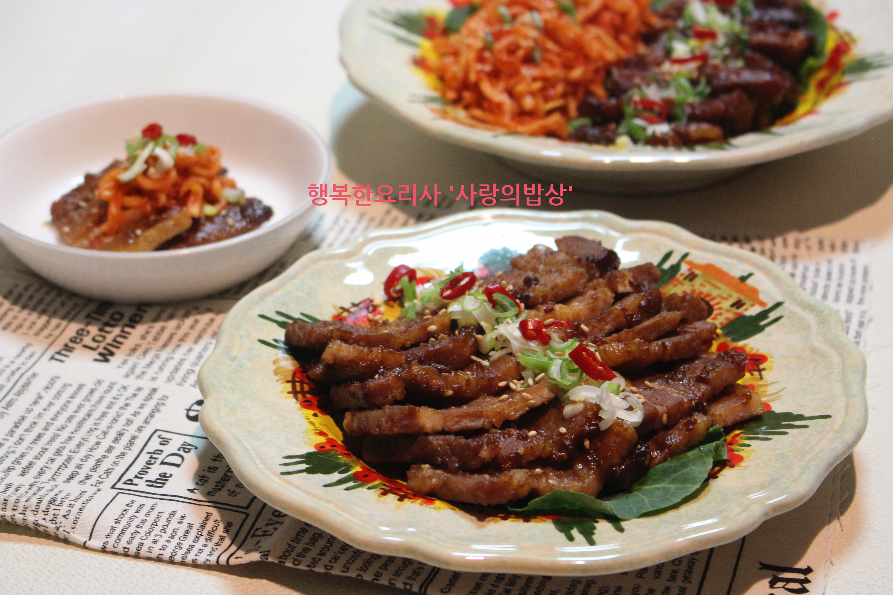 4. 3의 양념에 칼집 넣은 삼겹살을 한장씩