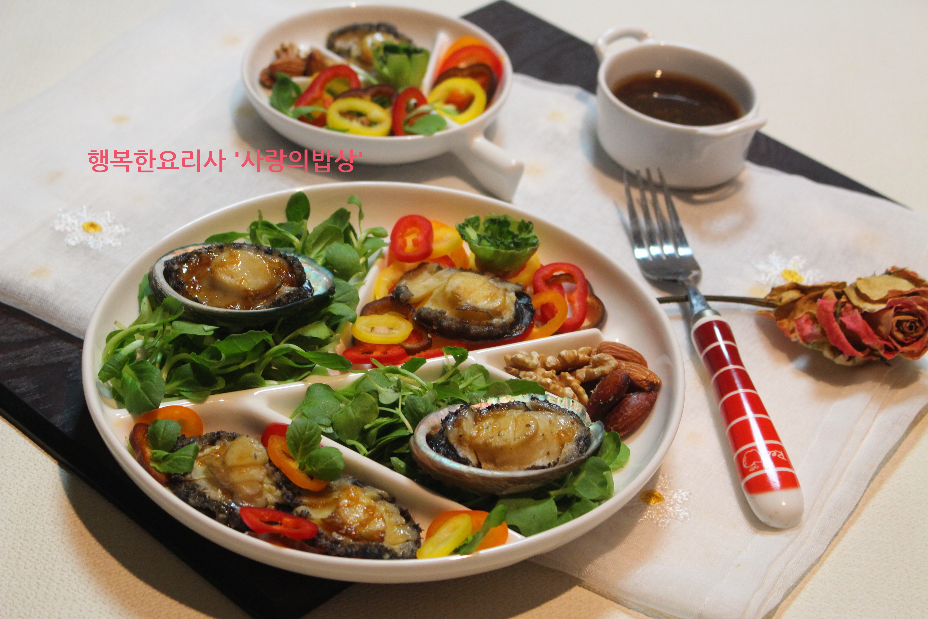 샐러드의 황제전복샐러드 어제는 밤새 영하 9도까지 떨어졌다가 한낮에는 영상으로 올라 샐러드 채소를 사러시장에 다녀오기로 했는데요. 오후에는비가 눈으로 바뀌다가 다시 한파가 밀려 온다고 합니다. 날씨에 영향을 받는 재래시장에 눈발이 날리니손님은 뜸하고 착한 가격으로 살 수 있는기회가 오더라고요. 완도에서 올라온전복이라는데 골라서 가져가라고해서 바다의 황제를 사왔습니다. 우리 은지는 육류 보다는 꽃게나 낙지, 전복 등조개류를 좋아하는데요. 딸아이 생각이나서 전복을 무조건 사고 보니 지난생일에 동생들이 선물한 예쁜그릇이 생각 났습니다. 맛과 영양이 뛰어난 전복은 비타민과 미네랄이 풍부한 바다의 명품인데요.칼로리가 낮고 지방 함량이 적어다이어트에도 좋으며 각종 무기질이 풍부해 부..
